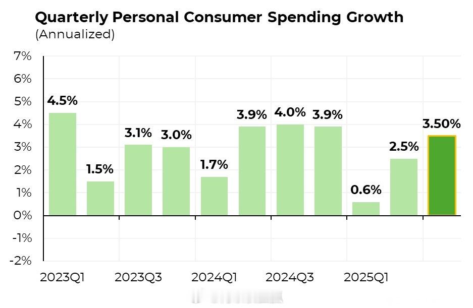 川普关税大战被看破烂尾后(包括川普解雇美国劳工统计局长)的美国第三季度GDP增长率升至4.3%,消费增速升至年化3.5%,但仍低于GDP增速和2024年消费增速。