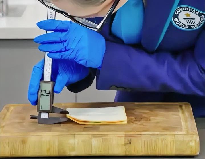 厚度5.12毫米的三明治,挑战尼斯世界纪录成功了。 搞不懂这个挑战的难度在哪?切两片面包、一片西红柿、一片黄瓜,然后夹在一起。 就算没切过菜的人,慢慢去切,也能切的相当薄,结果这就能申请世界纪录? 越来越看不懂吉尼斯世界纪录,如今它真的一点权威性都没有,更像是一个哗众取宠的舞台。 它记录的早就不是人类的各种极限,而完完全全变成了创意恶搞大赛,只要你想出来一个新点子,就能拿一个世界纪录,甚至吐槽都行。