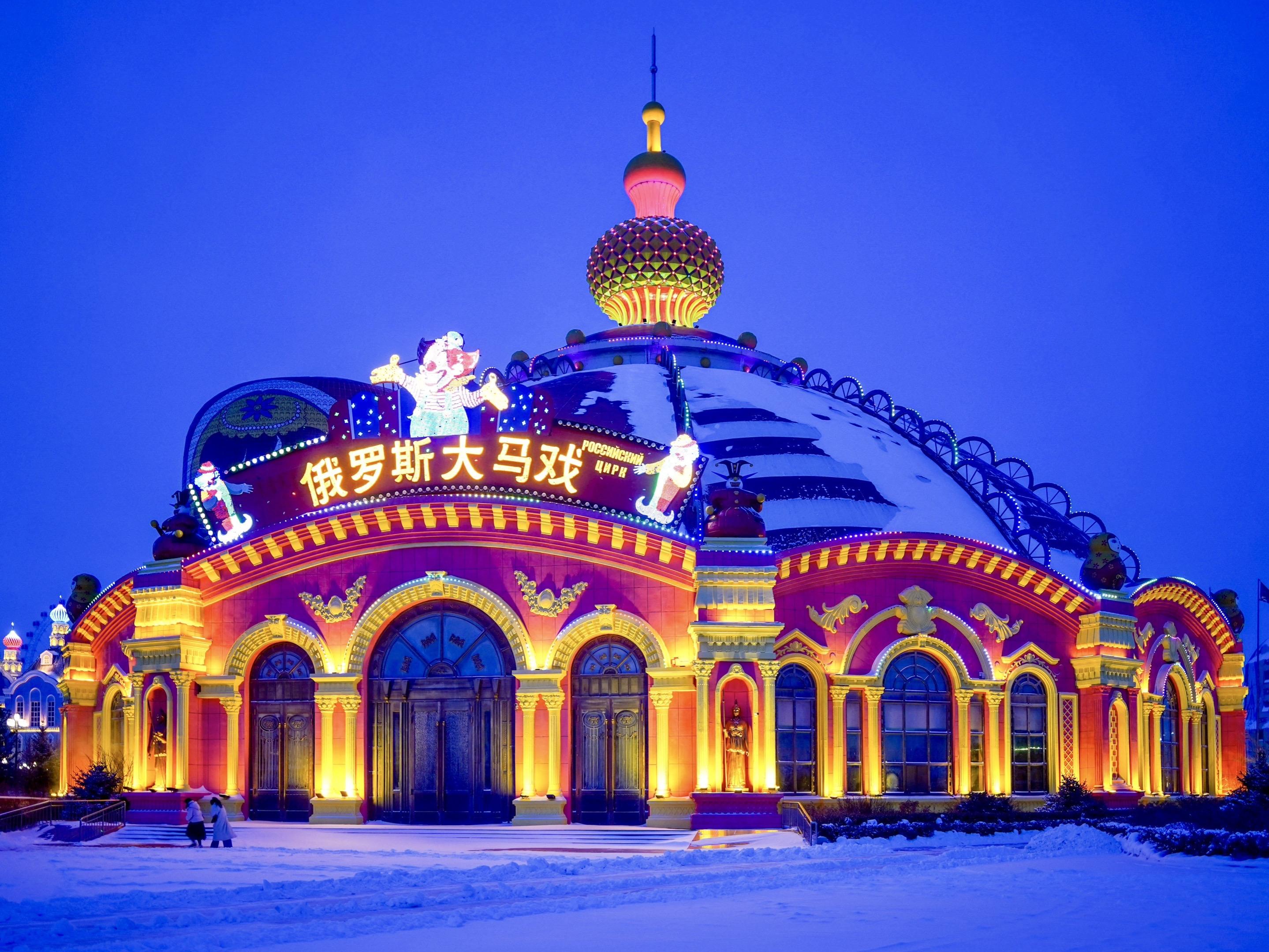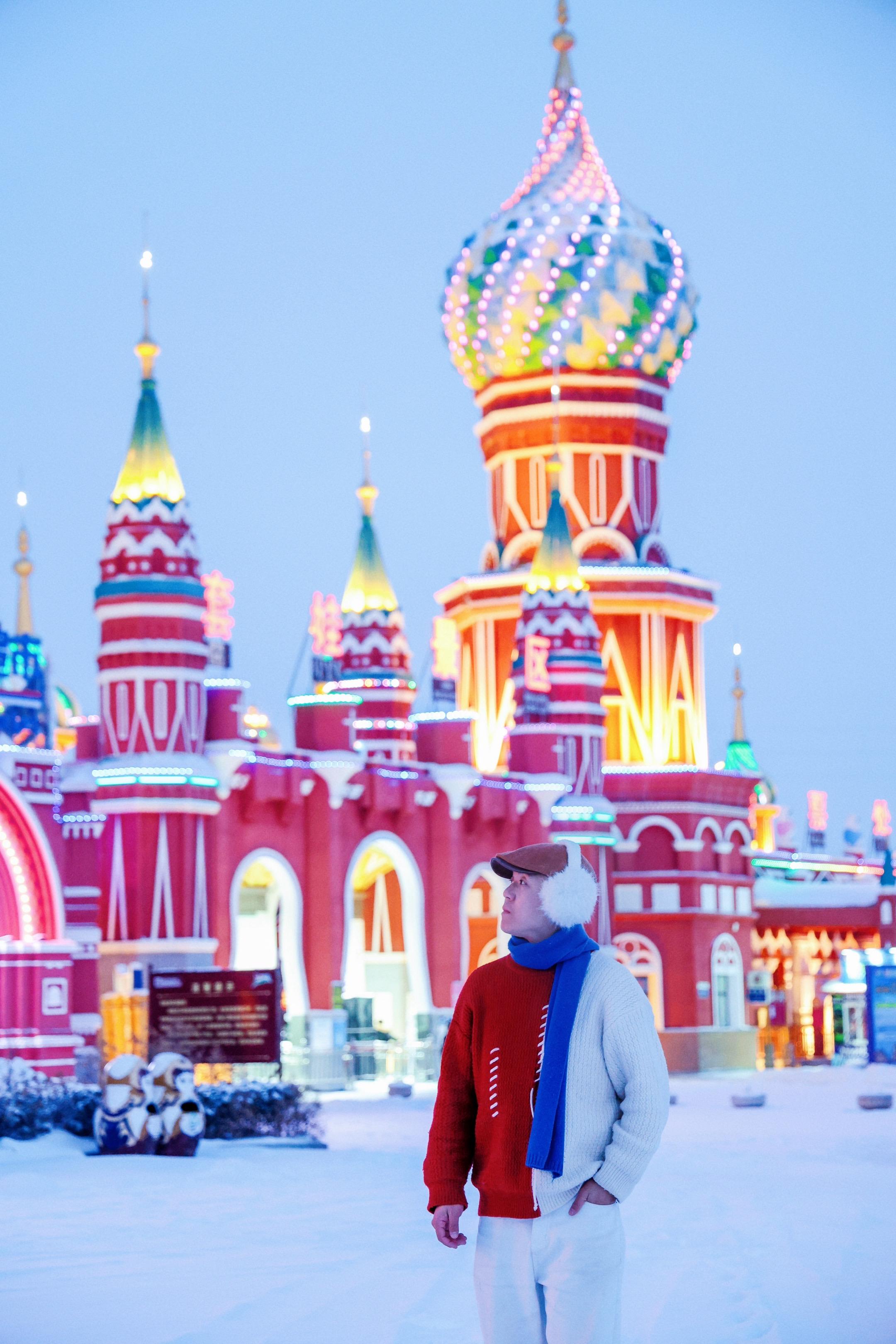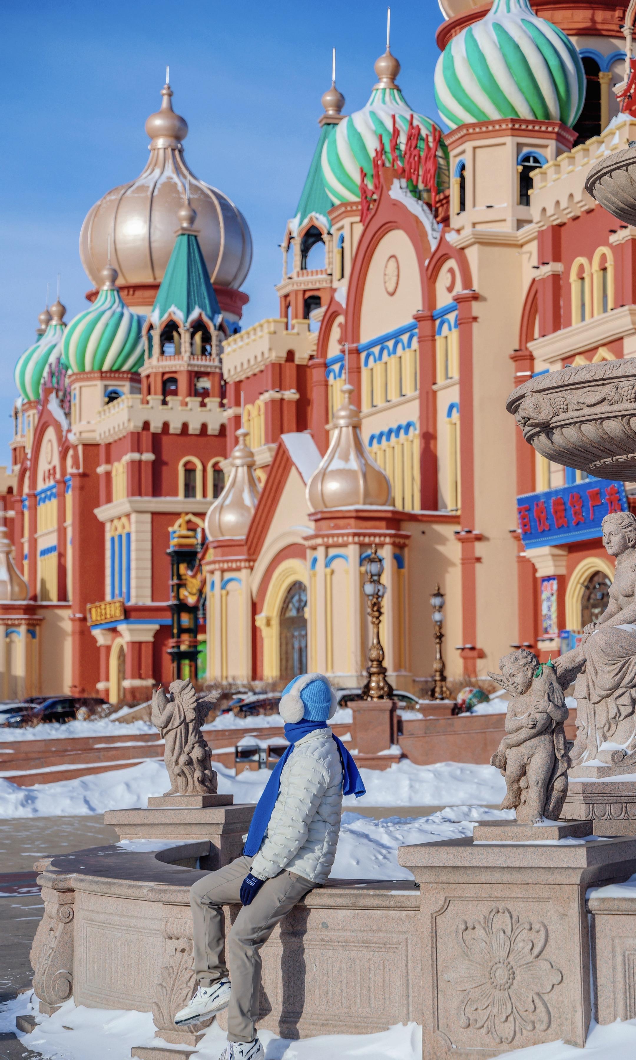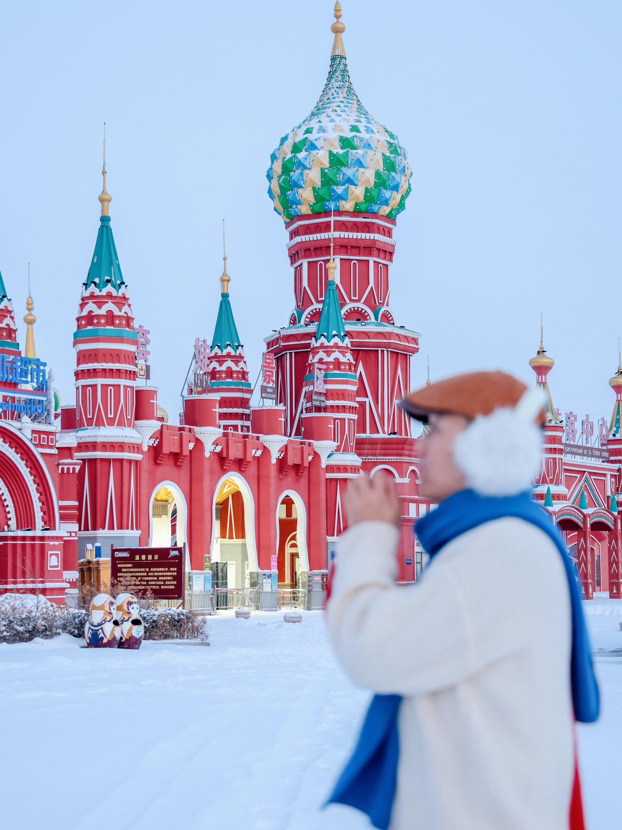这座冰雪边境小城🪆藏着会发光的童话世界。踏冰逐雪原歌游内蒙古 旅行推荐官 满洲里 如果你也相信童话存在 那么一定要在冬天来一次满洲里 傍晚时分的套娃景区被雪包裹 像刚刚撒上糖霜的姜饼城堡 蓝调时分灯光亮起 整个世界忽然变成水晶球里的风景🏰 金顶在雪中泛着暖光 彩绘套娃在廊下微笑张望 积雪压着俄式穹顶的曲线 每一步都踩出咯吱的雪声❄️ 站在雪地上张望 仿佛能听见隐约的手风琴声 转角会遇到穿裘皮大衣的“安娜” 还是哼着歌的雪精灵? 这个冬天,来满洲里赴一场冬日浪漫之旅吧❗️ 🪆TIPS ▫️亮灯