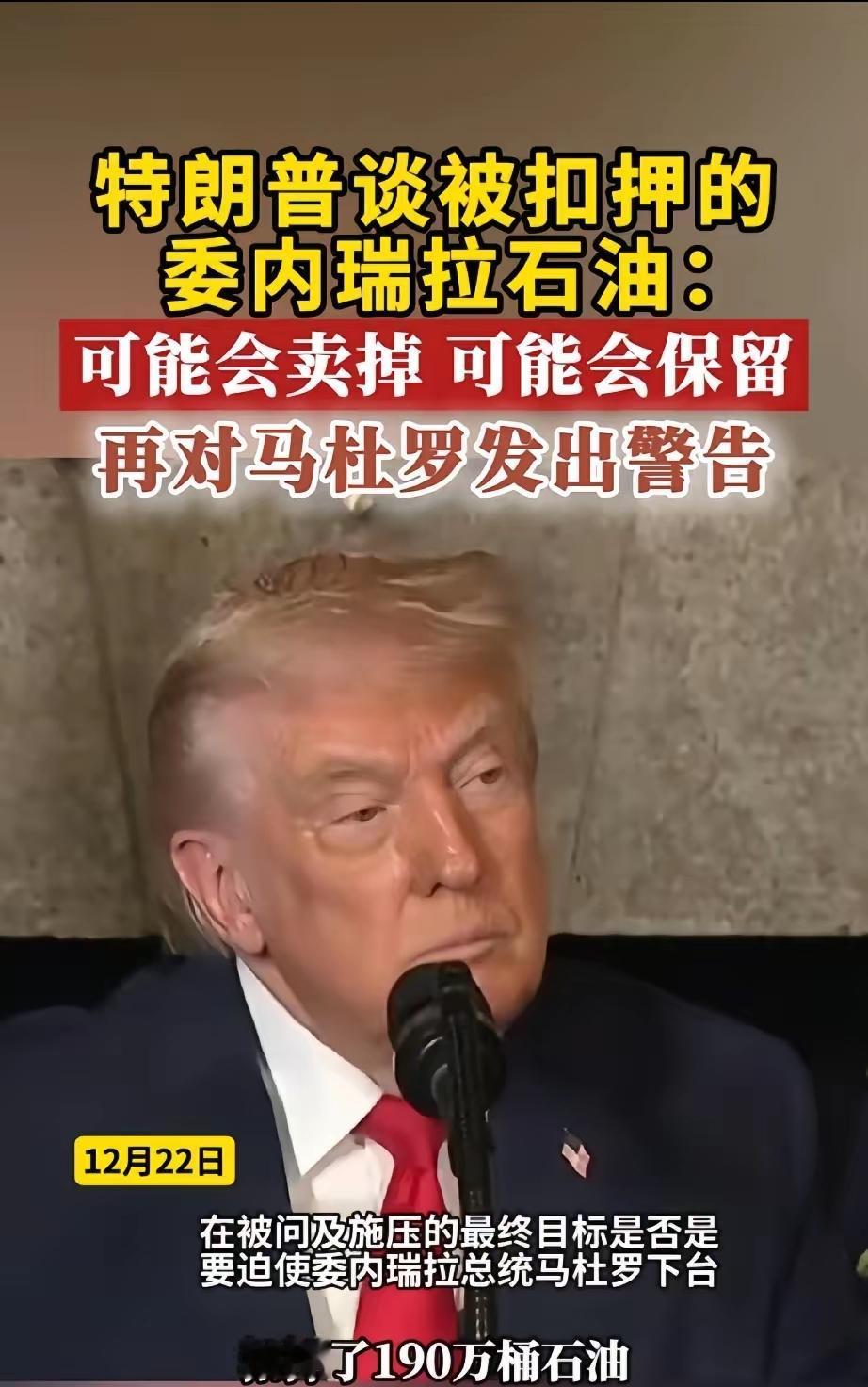 190万桶石油,合计1亿美金,特朗普派几架直升机留给拿走了,这是一点也不装了,特朗普直言,这些石油可能会被卖掉,或者留作自己用。特朗普做了这么多,一直说自己打击毒贩,结果现在真相大白了,哪有打击毒贩,结果没收人家石油啊?实际目的是为了委内瑞拉的石油啊,这石油来的这么快,又免费,难怪特朗普忍不住了。