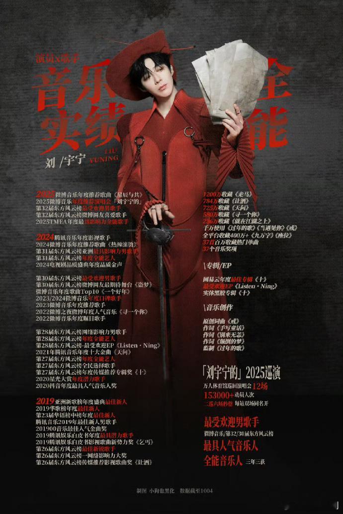 【年终成绩盘点—年度“全能王”刘宇宁】南都娱乐周刊封面十大人物—刘宇宁,2025年在影视、音乐演唱会、综艺三端全面开花,交出扛剧+高产+高口碑的全能成绩单,内娱最强“全赛道顶流”。✅剧集方面:稳定连爆,扛剧力拉满。达成荣誉:获电视剧品质盛典“年度突破表演剧星”,尖叫之夜荣获“尖叫男演员”,星光大赏荣获“年度最具人气剧集演员”,“成为内娱首位三平台古装破万男演员”。• 《折腰》(5月):腾讯视频年度爆款,饰演枭雄魏劭,原声台词与打戏获赞,开播6天热度破3万,角色热度破4亿,海外多国霸榜,成“2025古装扛剧标杆”。• 《书卷一梦》(6月):爱奇艺四年首播热度峰值,一人分饰南珩/离十六双角,角色榜包揽TOP2,云包场破20万场,古装演技获“断层认可”。✅音乐演唱会:高产“OST大户”,演唱会大获成功。荣誉达成获东方风云榜、微博音乐盛典“年度最受欢迎男歌手”等重磅荣誉。• 登央视春晚、元宵晚会引发热度高潮• 「刘宇宁的」 2025巡演六站十场场场秒罄场场爆满🔥✅综艺方面:音综作品百万收藏+旅行综艺推理综艺部部爆款• 常驻爆款:《地球超新鲜》《开始推理吧》《音乐缘计划2》三档顶流综艺无缝衔接,兼具冷笑话制造机、逻辑担当与舞台唱跳魅力,《九万字》《自诩周全》等舞台出圈,话题阅读量破千万。