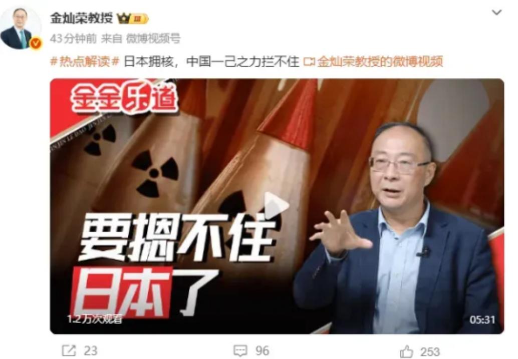 就在刚刚   金灿荣教授宣布了:   日本拥核,中国一己之力拦不住!要知道,这话
