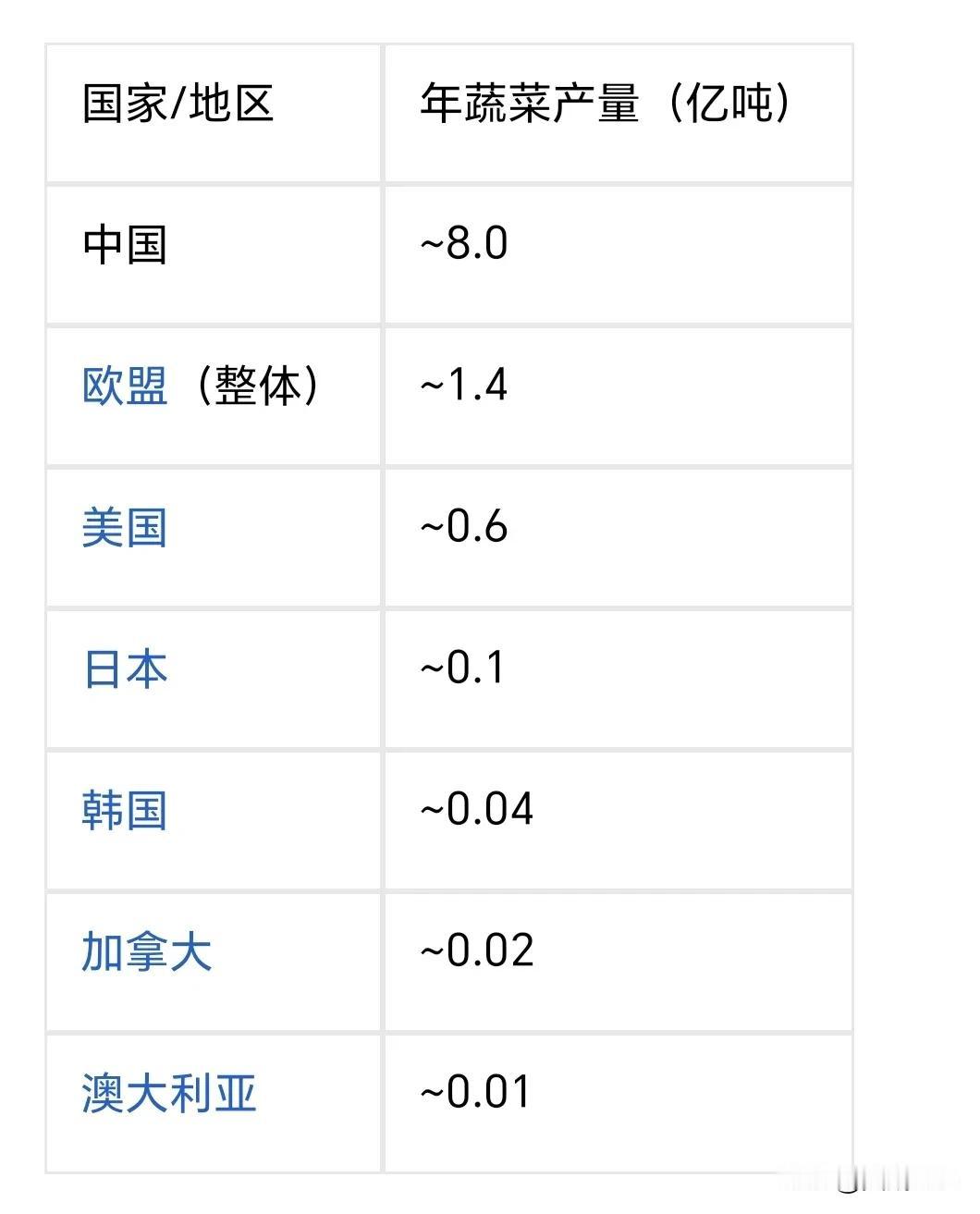 全球蔬菜产业的巨无霸克苏鲁,中国蔬菜年产量是美国的13倍,日本的80倍,欧盟的近6倍,约占全球的40%以上。出国了,才知道中国蔬菜自由是多么的幸福。