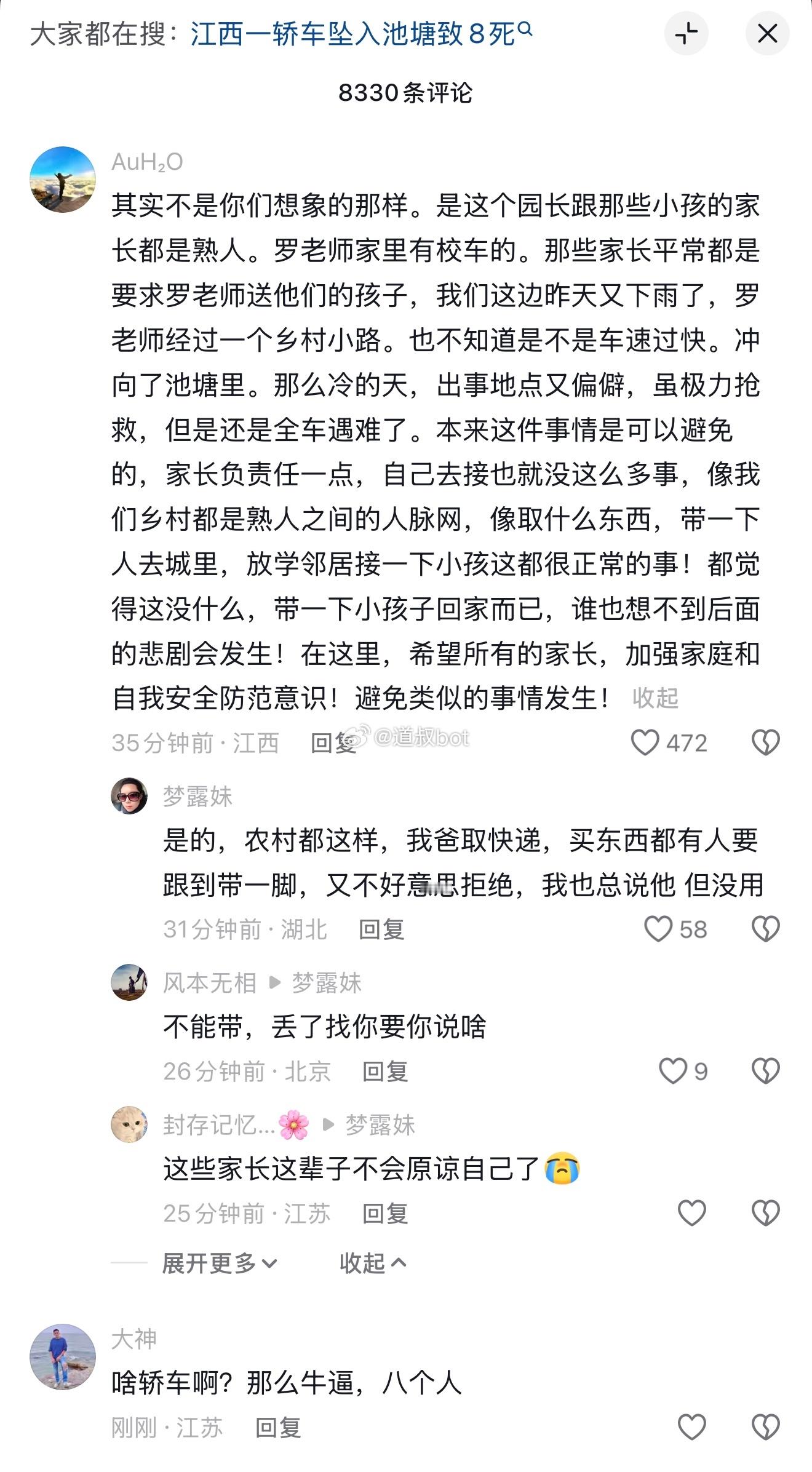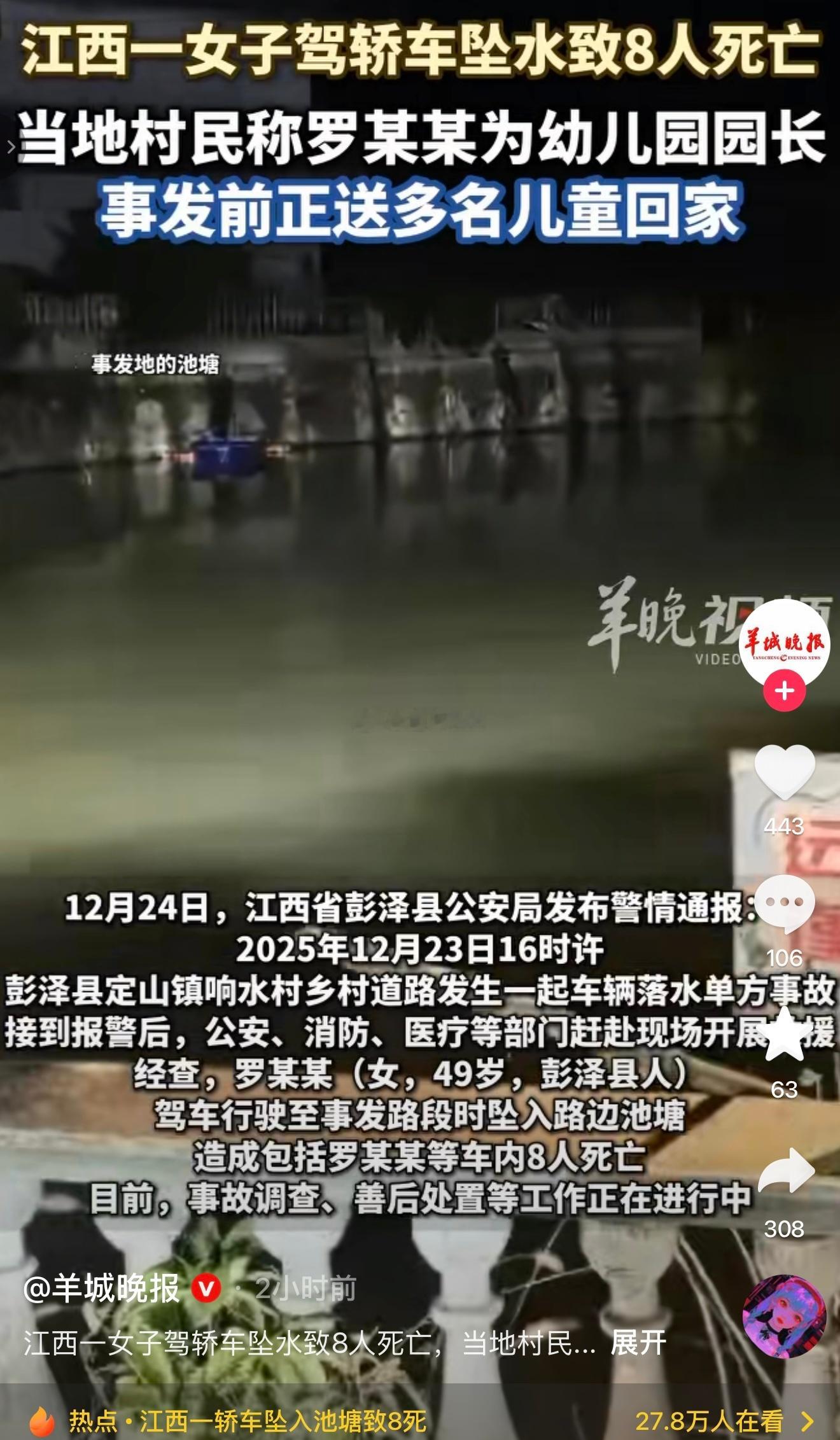 车内8人全部遇难,包括驾驶员、1名幼师,6名儿童!现在的小孩多金贵啊,这叫这些家长怎么活?江西落水事故多名儿童遇难