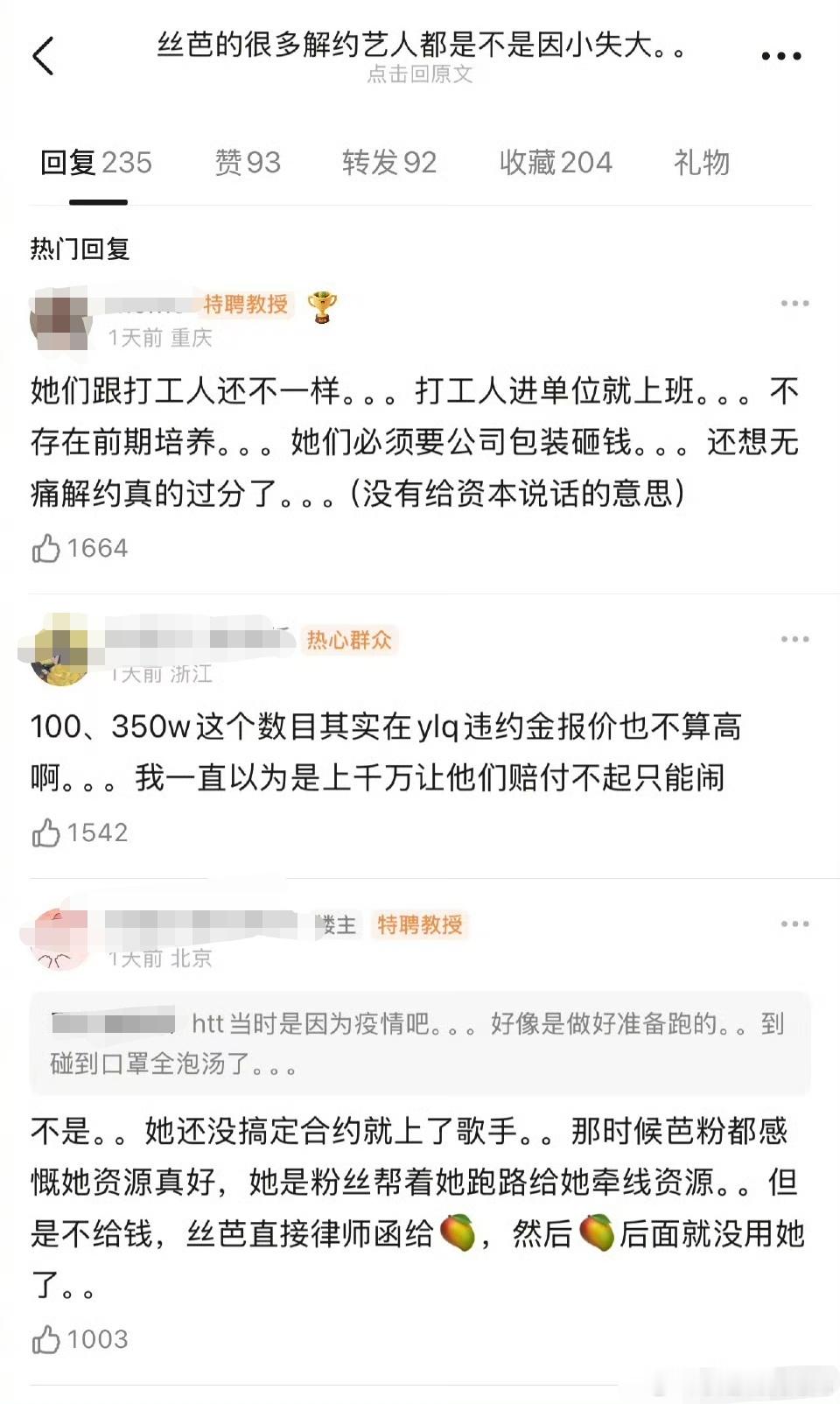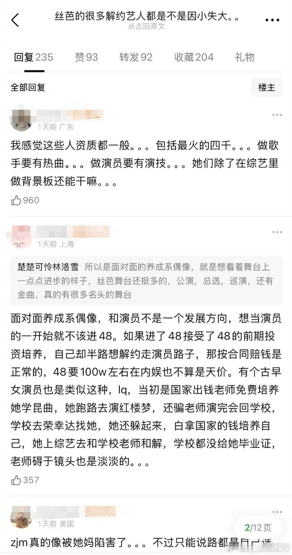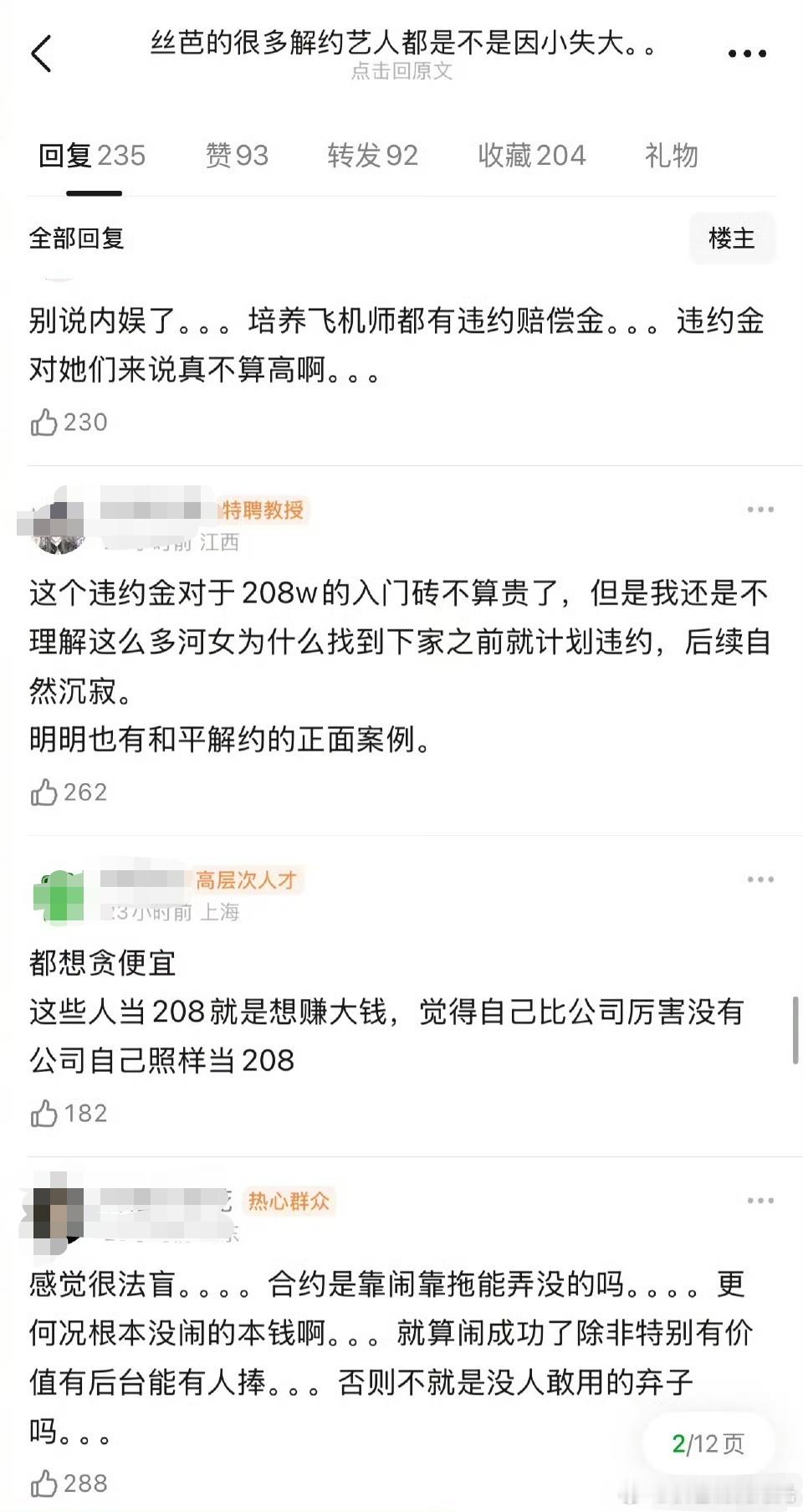 丝芭解约艺人是不是因小失大 有网友发帖说,丝芭很多解约艺人是不是因小失大?赵嘉敏、黄婷婷、沈梦瑶、戴萌等等。网友说,其实丝芭的实际解约金相对于这个圈子并不高,大部分只有几十到100万。公司前期栽培其实花了很多精力,很多解约艺人因为不肯赔钱,导致错过在圈里发展的好时机,相较于前途和那点违约金其实是因小失大。