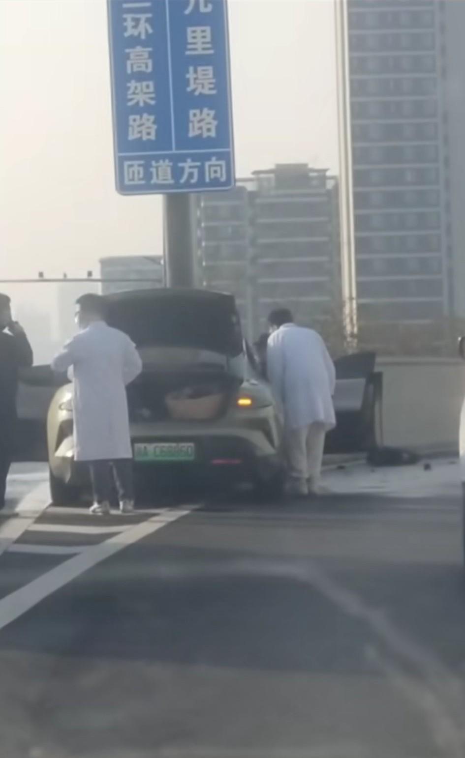 四川成都。某米电车在高架匝道口发生碰撞事故,车上应该是有人员受伤,120都出动。具体事故原因,以官方通报为准。 视频显示:两个穿白大褂的工作人员不紧不慢的往车里面张望。咱也不知道他们到现场是去干什么,不是应该赶紧施救吗? 有当地网友吐槽:二环路都会干翻,这司机到底是怎么开的车啊?