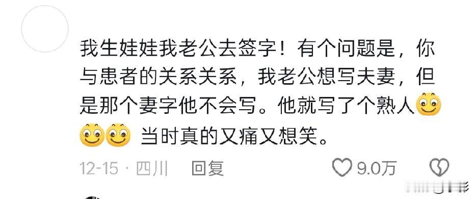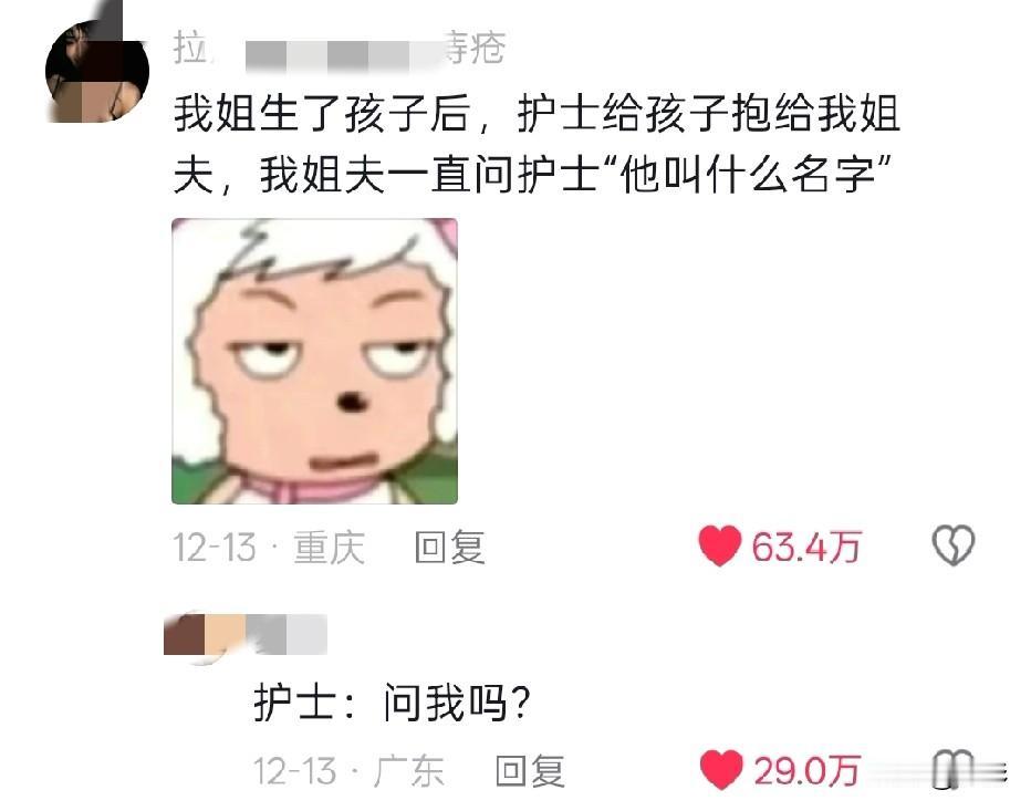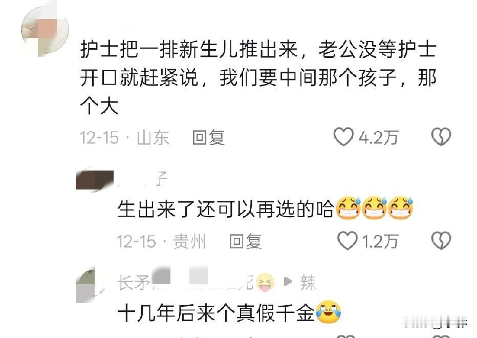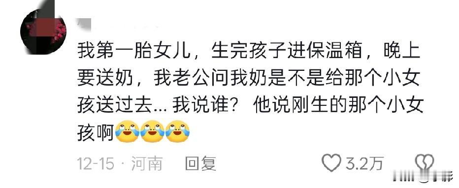 这就是第一次生娃名场面吗[泪奔][泪奔][泪奔] ①友友:出院那天,我老公安排 他妈妈拿行李包,他扶着我,我妈妈拿盆 水壶什么的。 护士急忙拦着,人,还有个人[发怒][发怒][发怒] ②友友:我生完孩子晚上给孩子喂奶,我老公问我,这奶眼是生的时候医生给扎的吗?[黑线][黑线][黑线] ③友友: 给老公说孩子6个月可以吃辅食了,他说吃啥,我说米粉,他疑惑了一会,犹豫地问“炒米粉?不行吧?”[尬笑] 真是笑到打鸣[泪奔][泪奔]!果然生孩子的名场面永远不缺笑点,友友们的经历也太有画面感了,隔着屏幕都能感受到友友们老公当时的慌张!(=´ᴥ`) 顺产尴尬事 奇葩生娃事件 产房感人瞬间 生娃