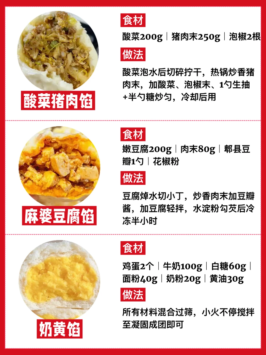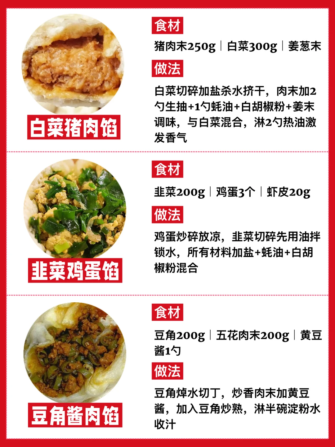 🔥16款家常包子馅配方‼️巨好吃㊙️附详细做法
