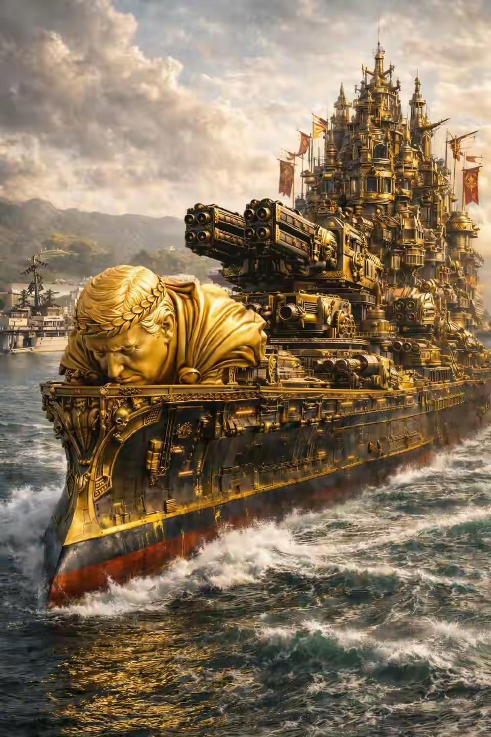 特朗普前脚说,要打造2艘黄金战舰,世界最强战舰,这网友,后脚就给他设计出来了,黄金战舰,而且是特朗普战舰!这届网友厉不厉害?牛不牛?特朗普做梦都没想到吧,给他设计好了什么样的战舰,就给他造出图片来了! 看上去是不是很霸气?很有个性!符合特朗普的性质!很符合特朗普的设计感吧