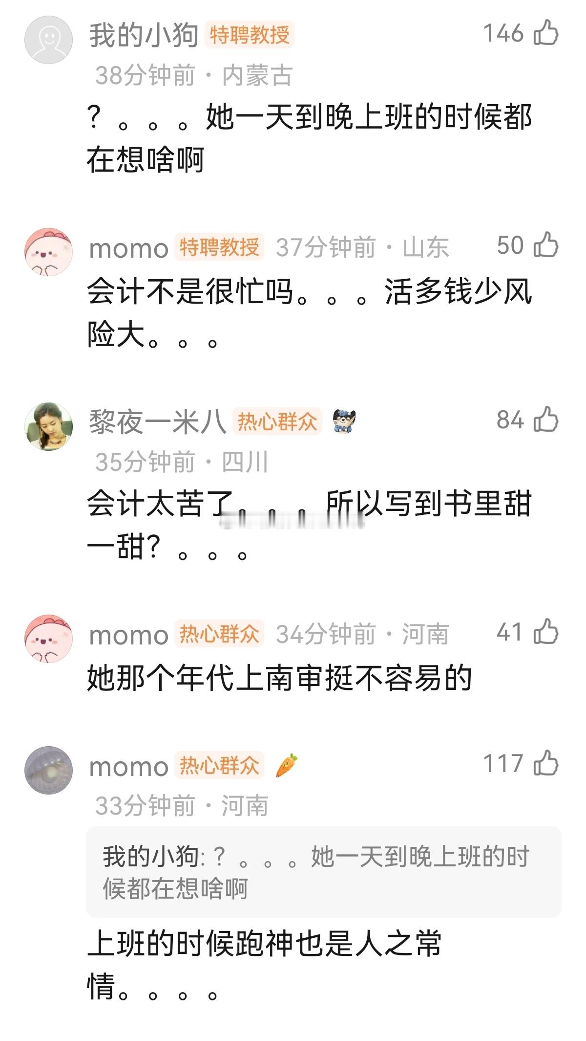 骄阳似我、杉杉来吃的女主都是会计,顾漫本人就是会计~