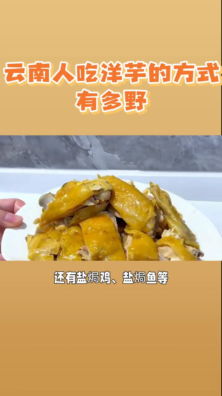 云南人吃洋芋的方式有多野? 云南人吃洋芋的方式有多野?在盐锅里直接焗。你没听错,这不是黑暗料理,而是大理云龙县白石镇顺荡村的独特吃法。 走进大理白族自治州云龙县白石镇顺荡村,你会发现这里的人们煮盐时总不忘在锅里放上几个洋芋。不一会洋芋就在盐锅的热气中熟透,散发出诱人的清香。这种独特的烹饪方式让洋芋不仅保留了本身的清甜,还融入了淡淡的盐味,风味别致,让人回味无穷。 云龙,这个古称"比苏"的地方意为"出盐的地方",诺邓更是因盐而兴。据《云龙州志》记载,诺邓、顺荡味更咸,不必洗造,而遂能成沙。这里的盐不仅滋养了这片土地,更孕育出了无数与盐相关的美食。除了盐焗洋芋,还有盐焗鸡、盐焗鱼等,每一道都充满了地方特色,让人流连忘返。 洋芋美食图鉴 大理的盐美食不仅是一种味蕾的享受,更是一种文化的传承。如果你也热爱美食,不妨来大理云龙亲自探索这些与盐有关的美味。 评论区分享你最想尝试的盐美食,一起感受大理的独特魅力。洋芋 盐焗 美食
