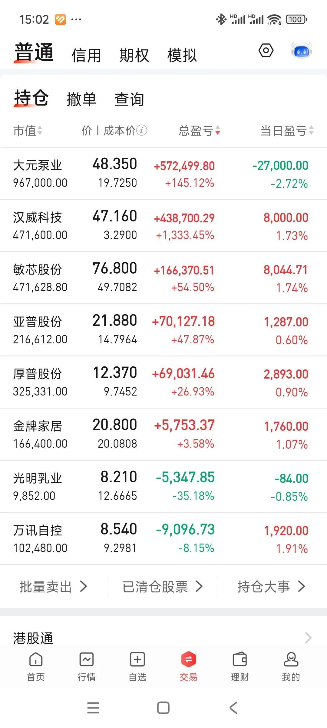今天大肉,回血7个多,不过这个月还是亏的,更没回到高点,慢慢来吧。这些天感觉到氢