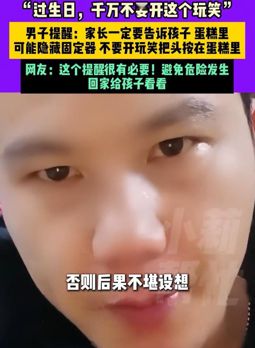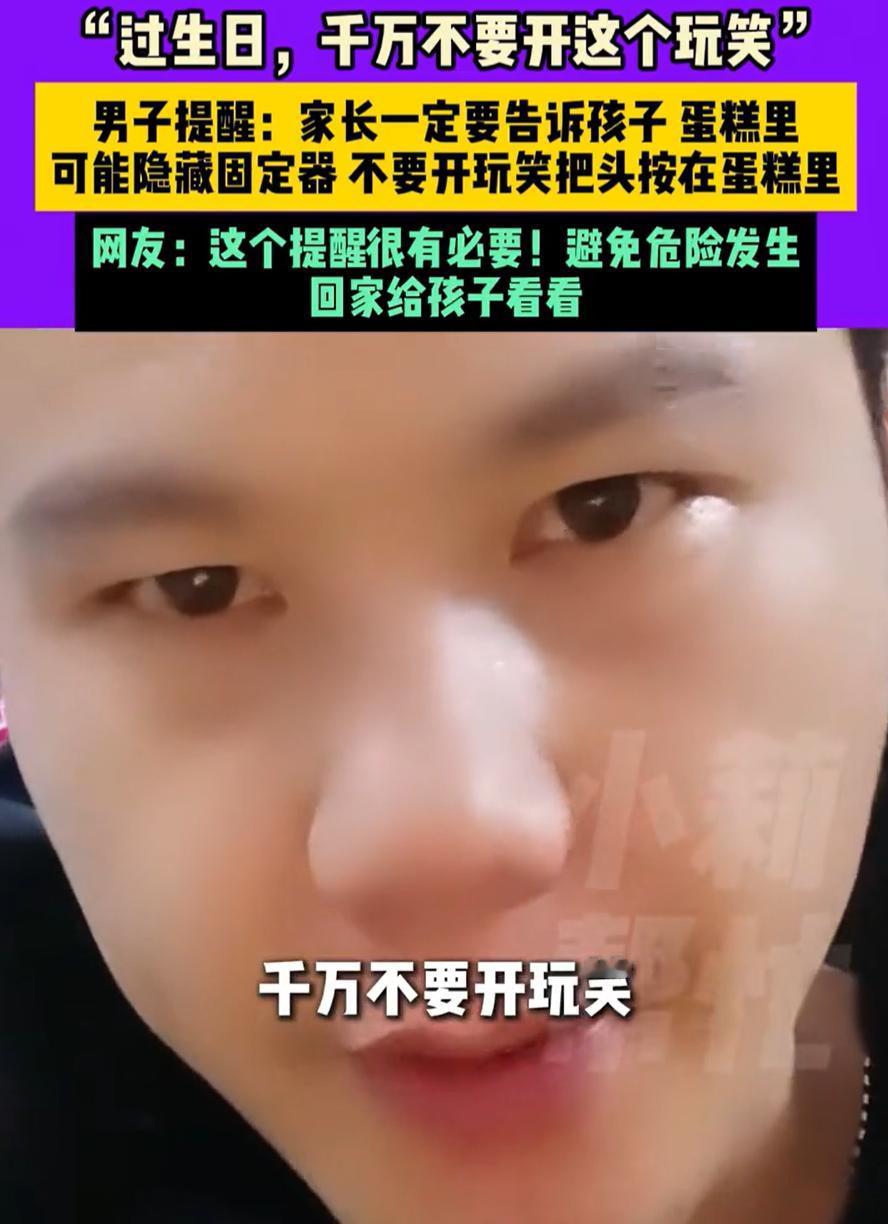 这也太危险了!安徽,一男子在网上发视频提醒,过生日时,千万不要再开玩笑把头按到蛋糕里面,不是因为怕毁掉蛋糕,而是现在有些蛋糕会在里面藏着固定器,如果碰巧赶上,可能就会引发悲剧。网友:我真见过! 男子介绍,前不久买了一个蛋糕,吃完后,就发现在蛋糕里面藏着一根固定器,在蛋糕完整没吃的时候,是根本看不到的,可如果谁家过生日开玩笑,把头按到蛋糕里,那后果就不堪设想,他也提醒各位家长, 一定要提醒孩子 有网友说:这个东西是蛋糕支架。一般是用在两层或多层蛋糕上,防止上层压塌下层的,像个小桌子,由一个圆形平面和一个或三个腿组成。正常使用是平面在上,腿在下。这种倒着用的,是真想不明白它的作用 还有网友说:正规的蛋糕店应该不敢这么马虎,万一真出事,店家肯定脱不了责任 站在常识角度看,这话不夸张。吃的东西里放硬质结构,本身就该格外谨慎,既要稳,也要安全,还得考虑消费者的使用习惯。现实是,很多危险不是设计初衷造成的,而是被玩笑放大了 我觉得,这件事真正值得警惕的,不只是蛋糕里有没有支架,而是我们太习惯把危险包装成热闹。按头进蛋糕这种玩法,原本就带点失控属性,只是以前没出事,大家就默认安全。一旦环境变了,道具变复杂了,老玩法不调整,就容易出问题 生日当然是开心的事,但开心不该靠冒风险来换。蛋糕是拿来吃的,不是用来按人的。热闹可以有很多方式,拍照、吹蜡烛、互相调侃,都比这种带隐患的玩笑更稳妥 生日蛋糕或藏固定器 按头有风险