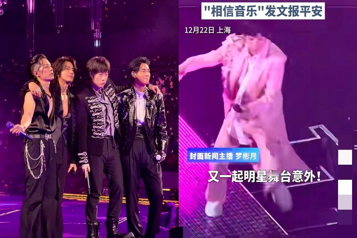 阿信从2米高台摔下,这事儿可真把人吓得够呛。 2025年12月22日上海「F✦FOREVER 恆星之城」巡演最终场,唱到《離開地球表面》时,阿信在舞台边互动,一脚踩空直接从近2米高的台子上掉了下去。 手都流血了,他只休息了大概2分钟,就跑回台上继续唱,还拿袖子挡着伤口。他真的真的太拼了,一句歌都没落下。 现场F3的反应超暖。吴建豪第一个冲下台去扶,周渝民递毛巾擦血还亲了阿信脸颊安抚,言承旭全程紧张地守着。 阿信自己心态倒挺好,在台上自嘲“刚才失忆了”,问“五月天怎么少了一个人”,还开玩笑说“下次一定站稳”,用幽默让粉丝安心。 他事后发文报平安,说自己是“史上第一个集全F3吻的男人”,医院检查一切正常。他解释说,刚忙完一个多月22场演唱会还来,就是因为“3个不忍心”。他发文说,我的脑袋没摔坏。 意外归意外,还是希望他好好检查身体,健健康康地继续唱下去比什么都重要。