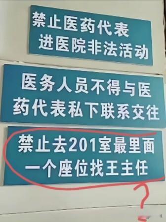 这家医院,你说你墙上贴的标语前面两条可以理解,作为一句口号喊喊没毛病,同时也可以应付上面颁布下来的政策。 那你说这第三条是几个意思? 给医药代表作导航吗?