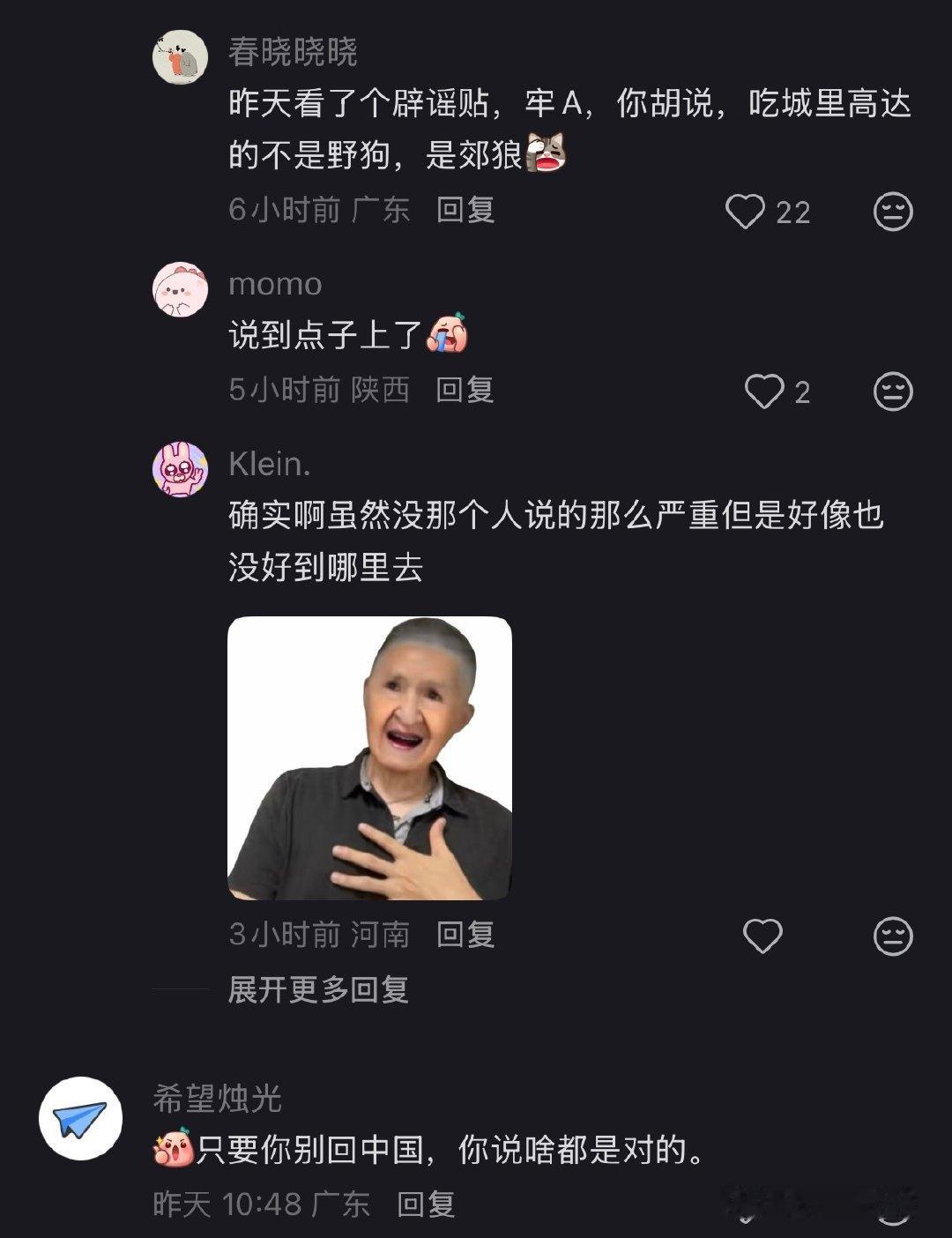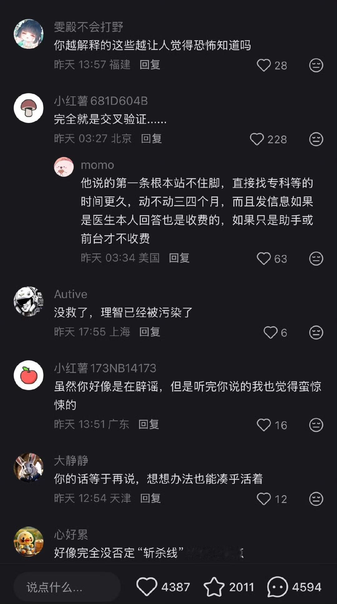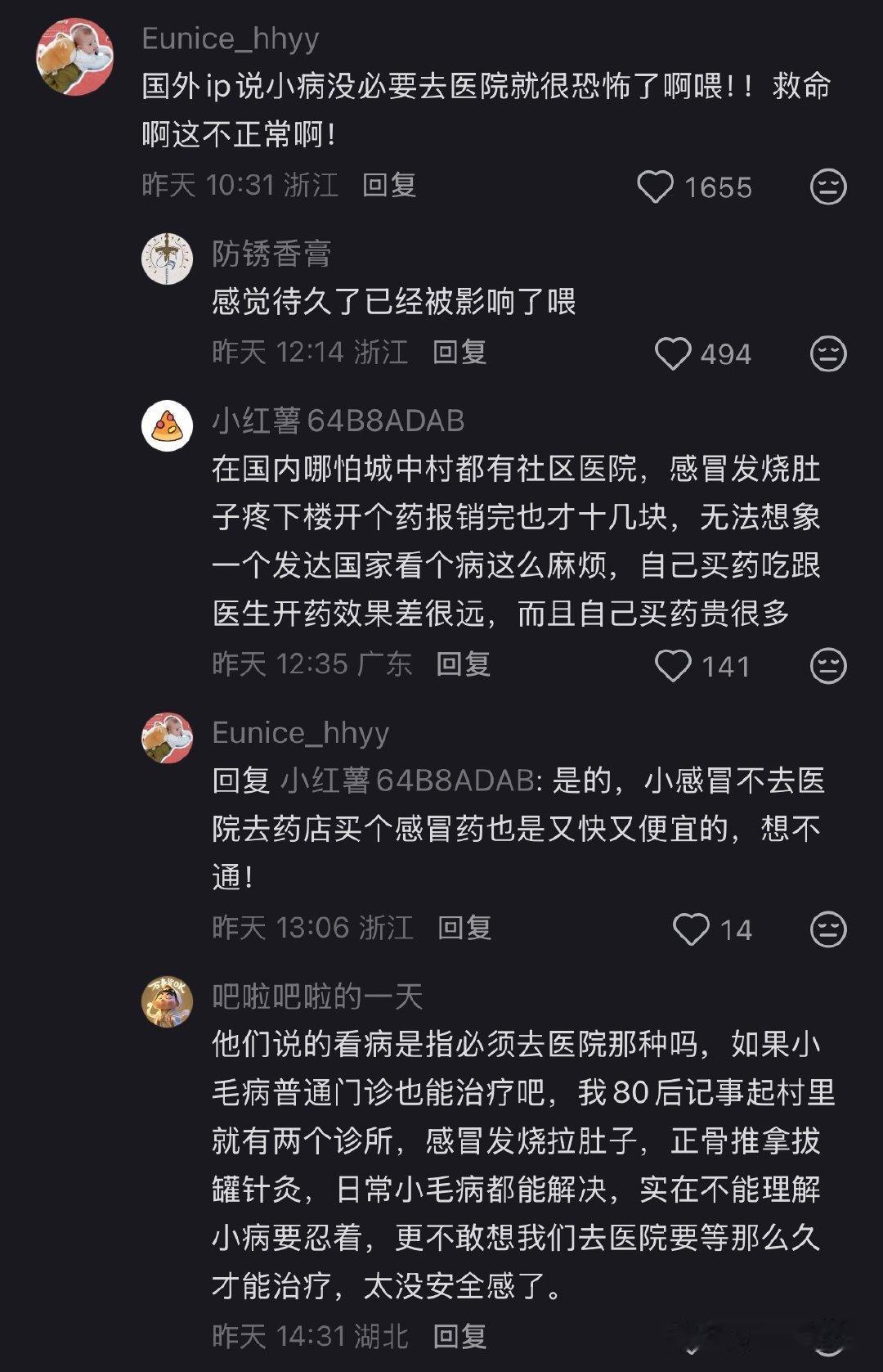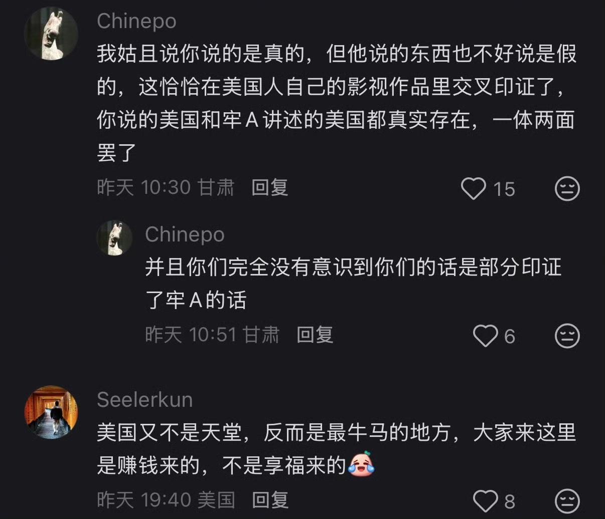 “回国看病”?与代美国版“何不食肉糜”! 有在美国的华人网友反驳牢A关于医疗斩杀线的观点,列了一二三,结果被自己在评论区的那一句“回国治病”给干露馅了。 网友锤击怼他:“美国人回哪个国?!”回国看把我给干笑喷了。 越辟谣,却越描越黑,老A说的是100%,你反而证实了90%。就像有个高达辟谣贴说:路边有高达吗,当然也是有的,但是不会长迪斯科米的,因为很快就有收走(这不就是牢A干的活吗?老A见的更多)。吃城里高达的不是野狗,是郊狼。 这特别像跟人谈着谈着他嘴里出来无数条触手。都被资本主义的克苏鲁给污染了而不自知。 就是有回国兜底,华人才觉得没有什么斩杀线。但美国人又能去哪呢?墨西哥、古巴?他们还有学贷这税哪费,普通人哪还有余钱? “美国人回哪个国?”振聋发瞆啊。麻木不仁,完全没能有力证明否认斩杀线存在的问题,反而他还放大了美国人阶级隔离的社会问题。 不止美国,其他西方国家也差不多。有去以色列交流过一个月的网友说,他们的学长告诉他们一个规则:“一旦身体的不舒服让你觉得要去医院的程度,不要犹豫,直接买机票回中国治病。”