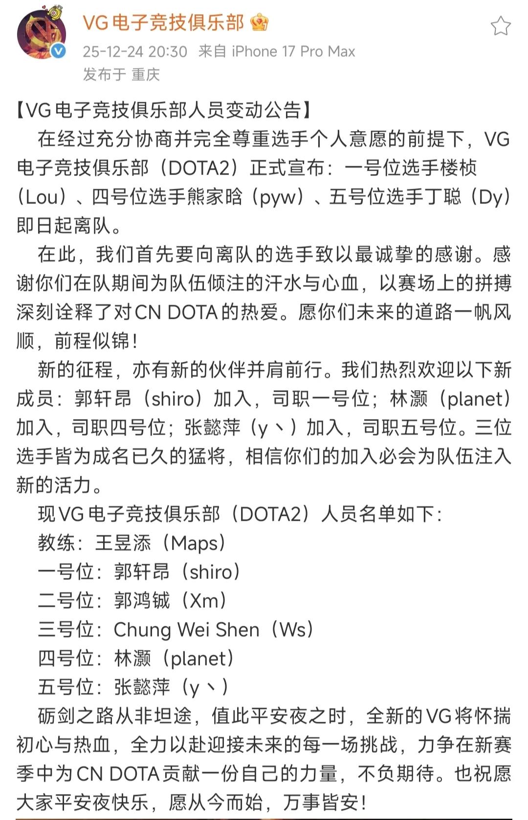 VG重组,TBD解散,希望队伍比之前更好 前段时间看直播说除了XG,队伍会重组