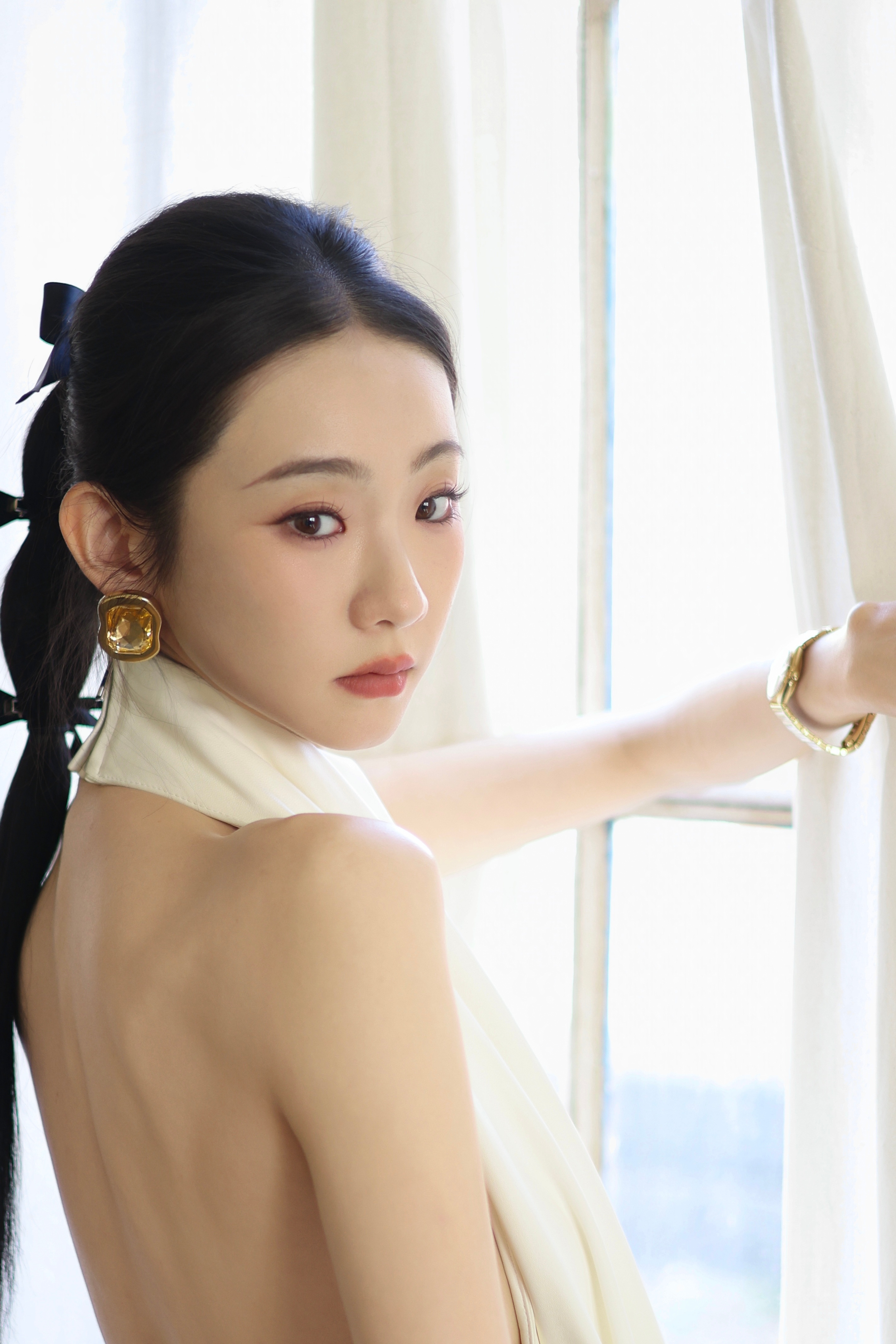 张艺凡 白裙滑落肩头,香肩半露,玉背如凝脂铺展,这肩背间的弧度,是揉碎了月光的勾人风情。