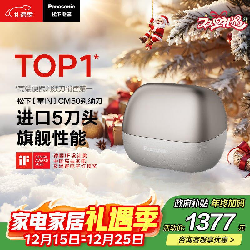 收到个圣诞礼物,一个剃须刀,搜了一下政府补贴完都要1376元没补贴只用店铺优惠得1720元,松下CM50。要我真舍不得给自己买这么贵的剃须刀,这剃须刀的销量我感觉都是女孩子买来送礼的多吧……光效做的挺漂亮的,但外壳材质没什么高级感,这个价位不应该也卷卷质感吗。另外机器很重,再上小胖子的造型,没啥手感。还没剃,但我估计刀片应该是超级nb的 松下(Panasonic)剃须刀掌IN光环电动剃须刀往复式进口五刀头Type...