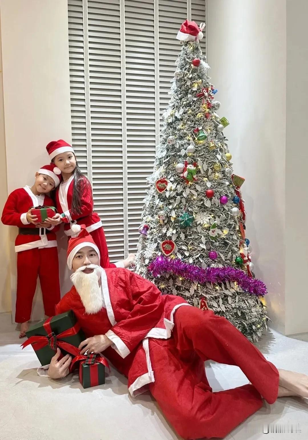 福原爱的两个孩子,跟爸爸一块在台湾过平安夜、圣诞节! 江宏杰打扮成圣诞老人的样子,带着圣诞帽,还贴上了白胡子,女儿和儿子也穿上了圣诞礼服。 看眉眼,姐姐的眉眼有点像妈妈福原爱,眉眼弯弯的,很可爱;弟弟就跟爸爸一个模子刻出来的,大眼小脸。 家里打扮得很温馨,圣诞树布置得很漂亮,江宏杰还给孩子们准备了礼物。 父子(女)三人一起过圣诞节,脸上都是笑容,看起来孩子们跟爸爸的感情很好啊!