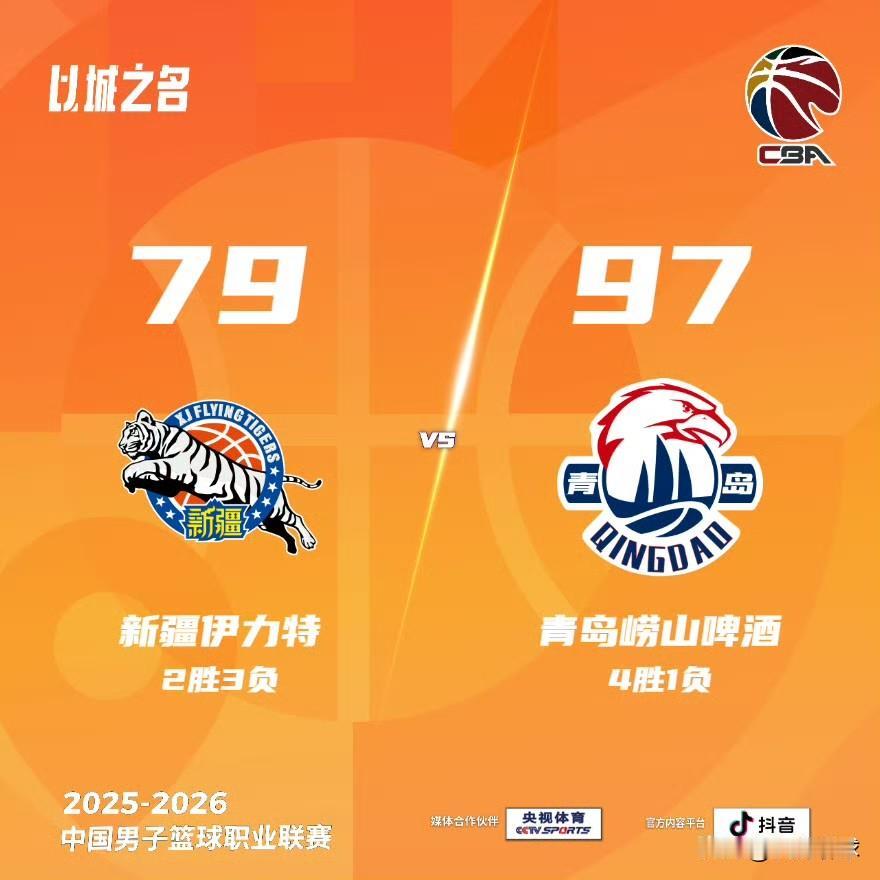 恭喜青岛男篮,客场79-97战胜新疆伊力特,青岛男篮今天米奇和韦瑟斯庞依旧高效,合力砍下39分,另外,国内球员多点开花,王奕博20分,段昂君18分,王瑞泽12分;新疆外援哈里斯首秀仅得17分,阿布沙拉木拿下14+10的两双数据,齐麟16分,劳森16分
