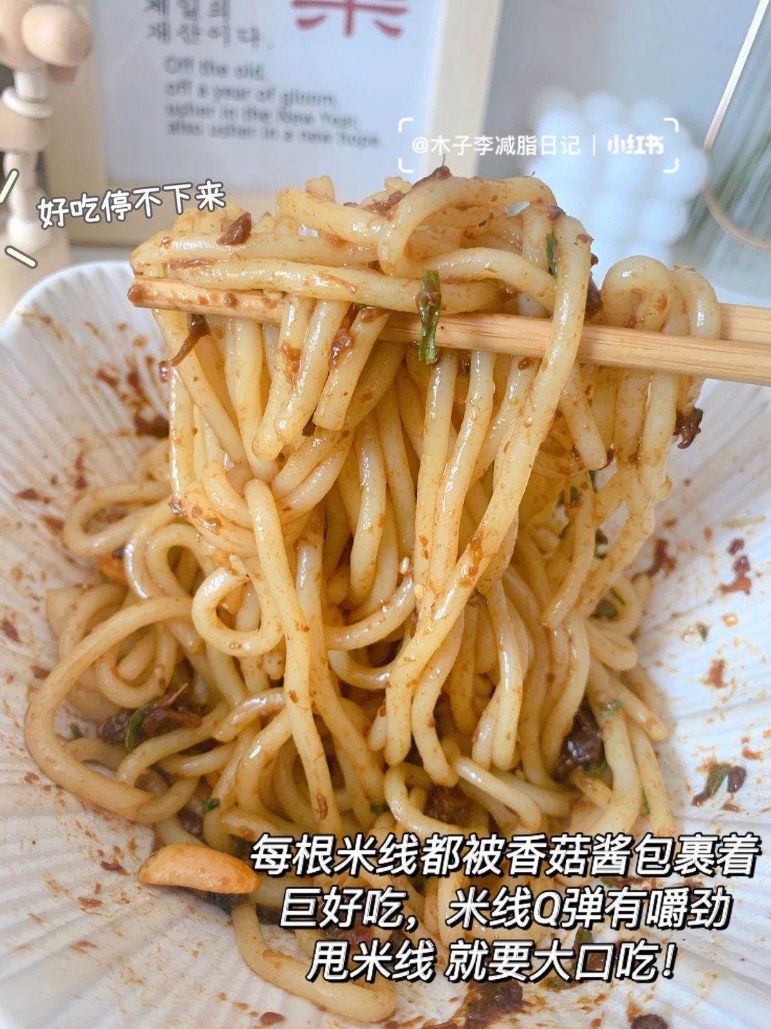 📣:两分钟就能搞定美味的一餐!打工人太爱啦!只需30秒烫煮在配上香菇酱料拌上一拌美味即可享受美味!米线Q弹爽滑有韧劲!吃起来跟新鲜的一样,绝了!在家也能随时吃上云南潮米线了!炒鸡方便👍🏻下次吃汤的嘻嘻!