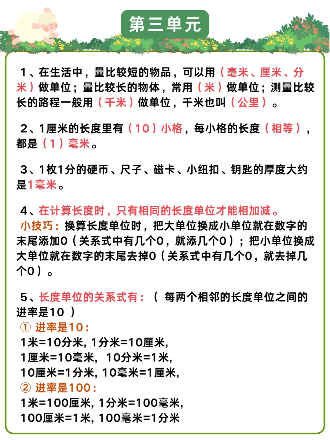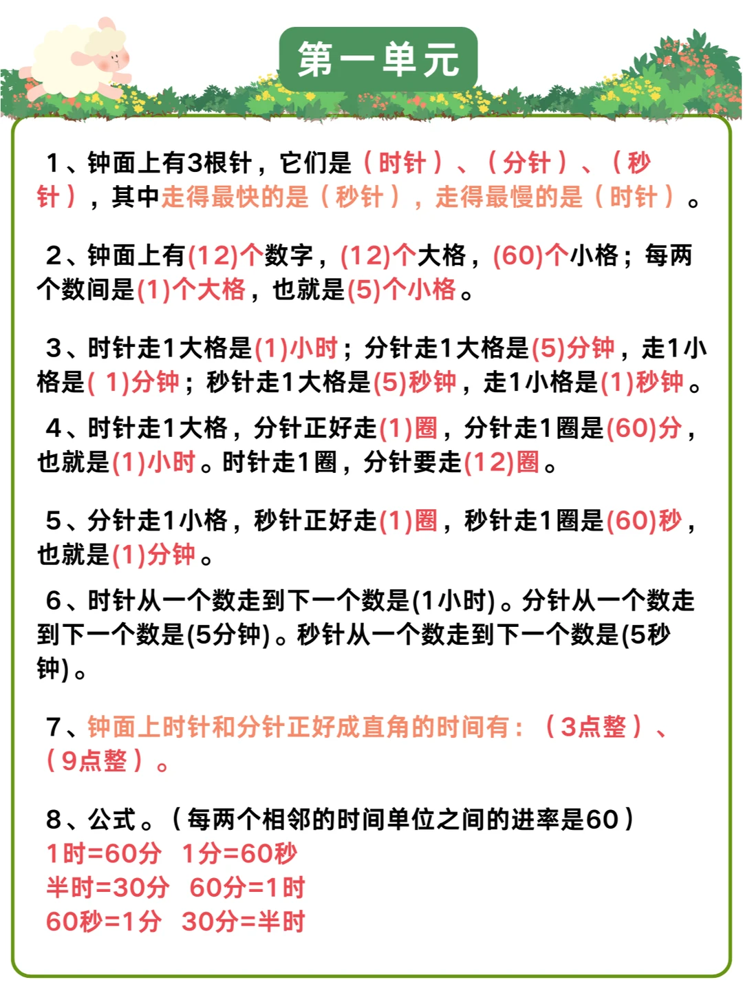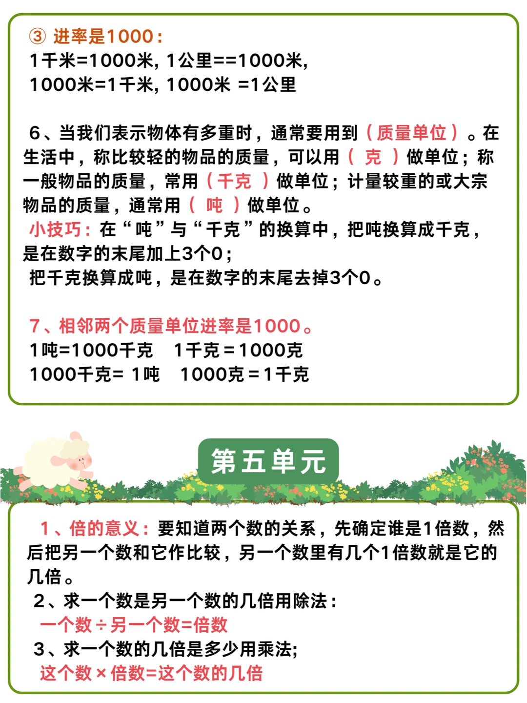 2️⃣熟练掌握三年级数学的基础概念和重要知识点,比如倍的认识、测量单位的认识、时分秒的认识。