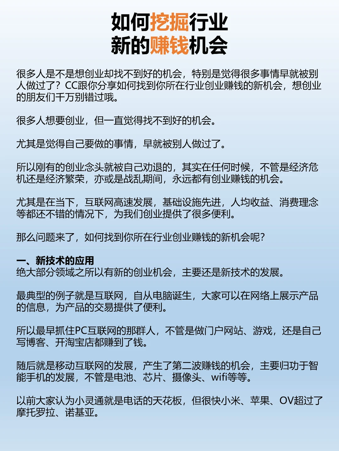 那么问题来了,如何找到你所在行业创业赚钱的新机会呢?
