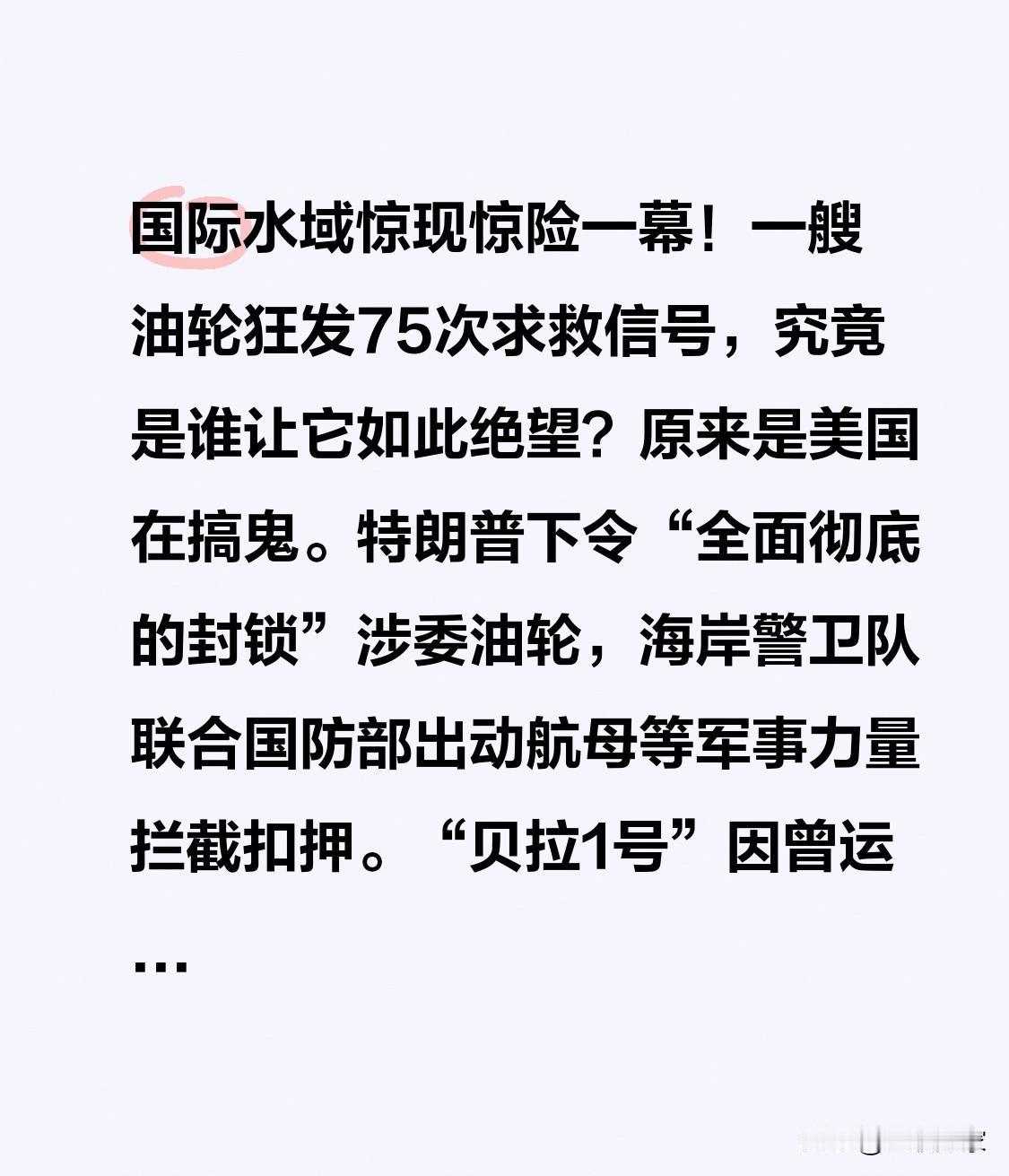 国际水域惊现惊险一幕!一艘油轮狂发75次求救信号,究竟是谁让它如此绝望?原来是美国在搞鬼。特朗普下令“全面彻底的封锁”涉委油轮,海岸警卫队联合国防部出动航母等军事力量拦截扣押。“贝拉1号”因曾运输伊朗石油、计划前往委内瑞拉装油,即便空载也成目标。美舰在国际水域强令登船,遭拒后油轮逃至公海,绝望地发出75次求救,却无人救援。 此前美军已多次出手,还搞双重标准。这种行径引发多方愤怒,被指违反国际法。美国如此霸道,国际秩序何在?大家怎么看美国的霸权行为?美国后续还会有啥动作?国际社会又该如何应对? 俄罗斯油轮扣押 美油轮被炸 俄罗斯油轮扣押 美油轮被炸 油轮泄漏 美军扣押委邮轮 美军扣押油轮 贝拉1号油轮 美国扣押委油轮