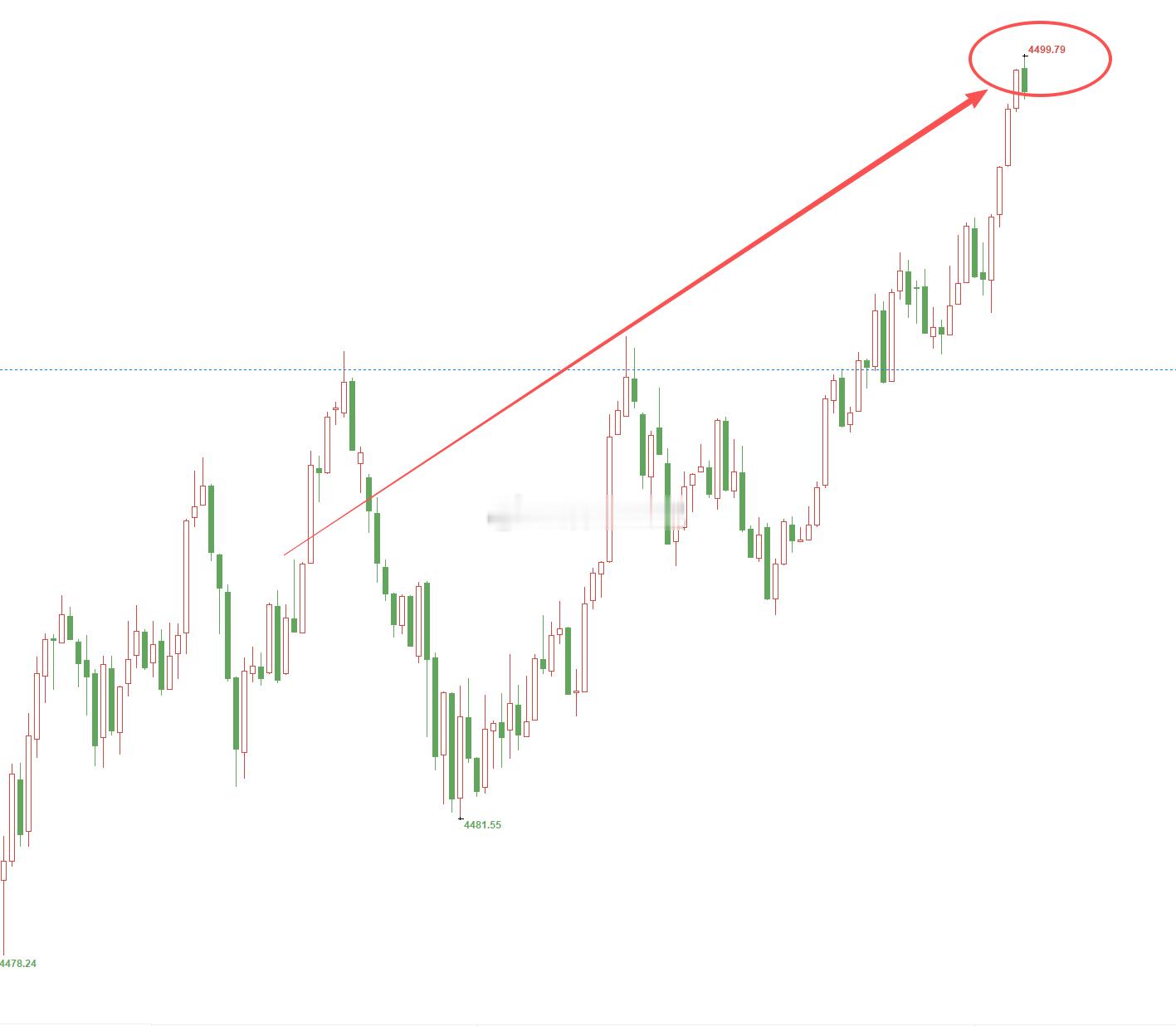 黄金4480位置多,现行情上涨至4499位置,多单已浮盈190个点,可护利减持,
