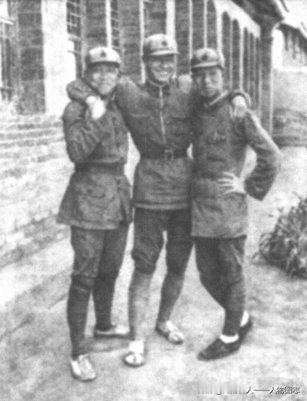 红军青年将领刘亚楼(左)、张爱萍(中)、莫文骅(右)在延安合影。(1937年童小