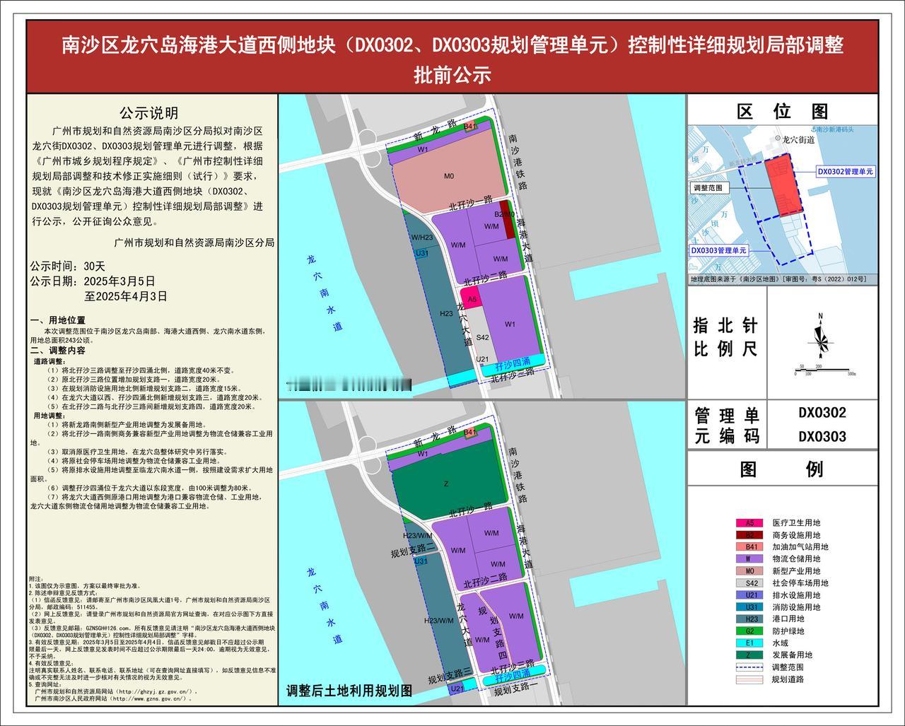 【龙穴大道竟然这么走?】近日,区发改局发布了关于龙穴大道南延线(北孖沙二路至四路段)及北孖沙四路工程可行性研究报告审批前的公示信息。公示内容显示,该项目总投资达67863.07万元,建设周期计划为24个月。项目主要建设内容包括新建龙穴大道南延线(北孖沙二路至四路段)以及北孖沙四路。龙穴大道南延线(北孖沙二路至四路段)全长约2.14公里,道路等级为城市主干路,规划红线宽度60米,规划为双向八车道(近期将按双向六车道进行实施),设计时速为60公里。 有趣的是,目前这块基本上都是荒地,所以这段路叫龙穴大道南延线也真的是奇怪。 目前龙穴大道应该是断尾在南沙港一期那里,之后的那边那段叫扬帆路,而再南那段又是叫海港大道。 而从这次的龙穴大道南延线工程,结合之前公布的其他控规来看,龙穴大道未来将会是走龙穴岛西部,不知道未来会怎么处理穿过保税港区呢?