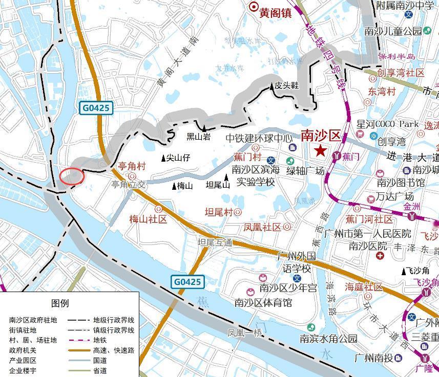 【拖了两年!南沙新版行政地图终于发布】2023年12月28日南沙区行政版图变动,从“三街六镇”调整为“四街六镇”,新设港湾街道,但调整后的新版地图虽然很早就招标了,但是一直迟迟未公开。现在在拖了两年之后,12月24日南沙区标准地图服务在南沙区人民政府官网正式上线。随标准地图公布的还有教育设施、南沙交通、医疗设施、产业空间、国土空间规划等。 大家可以从南沙政府网上下载。 让眼尖的小编一起来分析一下,毕竟截止目前位置,黄阁镇、新南沙街、港湾街这三个街镇之间的边界还是有点蒙查查的,这次让玩家一次了解完。 东北部方面,本来是没啥意外的,但是意外就出现了。其中北部基本上以小虎岛大虎岛中间的水道为界。而偏偏在蕉门北这边,奇怪的把立白和东方电气分开。也就是说这个叫黄阁工业园的位置,立白依旧是黄阁的,但是大厂东方电气竟然划给了南沙街。另外除了蕉门岛是南沙街的之外,市南大道以北的大块蕉门北都还是黄阁镇的。 西北部方面,虎门渡口是属于南沙街的,而货运码头则给了港湾街。 而比较有争议的亭角板块,可以看到基本上以南沙天汇作为分界线,只不过万洲大桥南边那块楼盘宣传册中的公园,竟然划给了黄阁。这就显得有点莫名其妙了,未来这个公园或许落地要有点难了。 而南沙街和港湾街在南边的边界方面,主要以广进路为交界。富力天海湾等等都属于港湾街。比较麻烦是大涌和红岭社区方面,边线有点复杂,其实比较合理的应该是把红岭社区也划给南沙街才对。 比较意外的应该是黄阁镇,没想到庆盛东部竟然也有一大块是属于黄阁镇的,而不是东涌的。