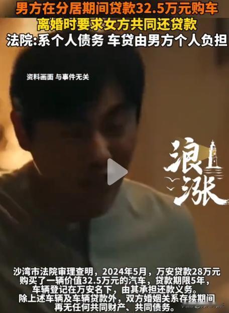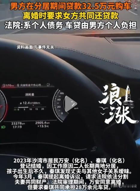 新疆塔城,万安和秦琪结婚后因工作两地分居,孩子出生后,秦琪发现万安和其他女性暧昧,二人开始分居。万安贷款28万买了辆32.5万的车,登记在自己名下自己使用,秦琪提出离婚并要求分割财产,万安同意离婚,却要求她承担28万车贷,秦琪拒绝,二人协商不成对簿公堂。一审二审都驳回了万安的诉求。万安在婚姻里不忠诚,还擅自买车,竟然想让妻子背债,哪有这样的道理! (来源:维度新闻、浪涨新闻、光明网) 秦琪(化名)和万安(化名)当初也是自由恋爱,婚后因为工作原因,两人不得不两地分居,聚少离多。孩子出生后,秦琪无意间发现万安与其他女性暧昧不清。 秦琪又气又伤心,质问万安,万安却支支吾吾,态度含糊。这件事成了两人关系的转折点,之后他们便开始分居生活,感情也变得岌岌可危。 2024年5月,万安不知出于什么考虑,没有和秦琪商量,就擅自决定贷款28万买了一辆价值32.5万的车。从选车到办理贷款手续,再到最后提车,整个过程秦琪都毫不知情。 车买回来后,直接登记在万安个人名下,也一直是万安自己在使用。他每天开着车上下班,周末还会开车出去游玩,生活过得似乎很惬意。 秦琪得知万安买车的事后,心里很不是滋味。她觉得两人虽然还没离婚,但感情已经出现裂痕,而且分居期间各自经济独立,万安这种擅自做主的行为太不尊重她了。 2025年3月,秦琪经过深思熟虑,觉得这段婚姻已经无法继续维持下去,于是向万安提出离婚,并要求分割夫妻共同财产。 万安同意离婚,但在财产分割问题上,他提出了一个让秦琪无法接受的要求。 万安认为,自己贷款买的那辆车,虽然登记在自己名下,但毕竟是在婚姻关系存续期间买的,所以要求秦琪承担一半的车贷,也就是14万。 秦琪觉得这辆车自己根本就没想买,从买车到使用,自己都没有参与过。车登记在万安名下,也一直是万安在使用,没有用于家庭共同生活,自己凭什么要承担车贷。 秦琪坚决拒绝了万安的要求,她认为这完全是万安的个人债务,与自己无关。万安却不依不饶,坚持要让秦琪分担车贷,双方为此争论不休,谁也不肯让步。 在协商无果的情况下,万安竟然一纸诉状将秦琪告上了法庭,要求法院判决秦琪承担14万的车贷。 秦琪觉得万安这种行为太过分了,自己在这段婚姻里已经受了足够的伤害,现在还要被无端牵扯进债务纠纷中。 万安声称虽然车是自己在使用,但买车是为了提升家庭的生活品质,而且贷款也是在婚姻关系存续期间产生的,所以应该属于夫妻共同债务。 秦琪强调了自己从始至终都没有参与买车的任何环节,对贷款一事也不知情,更没有在贷款合同上签字或事后追认。 秦琪还指出,这辆车买后一直是万安个人使用,没有用于家庭共同生活或共同经营,比如接送孩子、家庭出行等,所以不应该认定为夫妻共同债务。 根据《民法典》第一千零六十四条:夫妻双方共同签名或者夫妻一方事后追认等共同意思表示所负的债务,以及夫妻一方在婚姻关系存续期间以个人名义为家庭日常生活需要所负的债务,属于夫妻共同债务。夫妻一方在婚姻关系存续期间以个人名义超出家庭日常生活需要所负的债务,不属于夫妻共同债务;但是,债权人能够证明该债务用于夫妻共同生活、共同生产经营或者基于夫妻双方共同意思表示的除外。 本案中,万安在分居期间,未与秦琪商量,擅自以个人名义贷款28万买车,且车辆登记在自己名下并独自使用。 这并非基于夫妻双方共同意思表示所负的债务,买车的行为,明显超出了家庭日常生活需要的范畴,秦琪既未在贷款文件上签字,也未事后追认该债务,车辆也并没有用于家庭共同生活或共同经营。 因此,从法律层面严格界定,该车贷不符合夫妻共同债务的认定标准,万安要求秦琪承担车贷缺乏法律依据。 分居期间,夫妻双方在经济上往往处于相对独立的状态,虽然婚姻关系尚未解除,但各自的经济行为和财产状况在一定程度上具有独立性。 在分居期间,一方未经另一方同意,擅自进行大额消费或负债,尤其是像买车这种明显超出家庭日常生活需要的行为,不能简单地将其债务认定为夫妻共同债务。 因为分居本身就意味着夫妻双方在生活上已经产生了较大的分离,各自的经济活动在一定程度上不再紧密关联。 万安在分居期间买车并贷款,其债务的产生与秦琪没有直接的因果关系,秦琪也没有从买车行为中获得任何利益。 所以,从分居期间财产及债务的特殊情况来看,万安要求秦琪承担车贷也是不合理的。 经过审理,法院认为: 万安贷款买车时没有与秦琪商量,秦琪没有在贷款合同上签字,事后也没有进行追认。 而且车辆登记在万安个人名下,一直由万安个人使用,没有证据表明该车辆用于家庭共同生活或共同经营。 因此,法院认定这28万车贷属于万安的个人债务,秦琪无需承担偿还责任。 最终,一审判决: 驳回万安的诉讼请求后,万安不服,提起上诉。 二审,维持了原判,再次驳回了万安的诉求。
