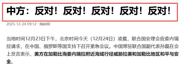“反对!反对!反对!反对!反对!” 中国五声铿锵有力的反对,响彻联合国安理会紧急会议现场,震撼全球! 12月24日凌晨,应委内瑞拉请求,联合国安理会紧急召开会议,就美方在加勒比海委内瑞拉附近海域的恶劣行径展开讨论。 这不是简单的表态,而是对美方霸道行径的严正驳斥,更是向全世界传递出明确信号:美方的霸权闹剧,该收场了! 最近美方打着“打击贩毒”的幌子,在加勒比海搞起了赤裸裸的霸权操作。根据央视新闻的报道,就在会议召开前几天,美方已经连续在国际水域拦截了三艘和委内瑞拉相关的油轮,12月21号那天,悬挂巴拿马国旗的“贝拉1”号油轮,明明是在前往委内瑞拉装载货物的途中,就被美方人员强行登船检查。 这还只是冰山一角,连月来,美方在这片海域部署了十几艘军舰,还有超过1.5万名兵力,迄今已经击沉了近30艘他们口中的“贩毒船”,导致上百人死亡。 更离谱的是,美方一边搞军事威慑,一边还对委内瑞拉实施全方位的制裁封锁,甚至把委内瑞拉政府列为“外国恐怖组织”,扬言委内瑞拉的领土、石油和资产都该归美国所有,公然威胁要对委内瑞拉本土发起军事打击。 可有意思的是,美国缉毒署自己的报告都显示,委内瑞拉根本不是美国主要的毒品来源地,美方从头到尾都没拿出任何能证明这些被打击目标涉毒的证据。 说白了,所谓的“打击贩毒”就是个借口,美方真正的目的,就是想通过军事威胁和经济封锁,在委内瑞拉策动政权更迭,抢夺当地的石油资源,满足美国大石油公司的利益,这一点连委内瑞拉代表在会上都直接点破了。 面对美方的步步紧逼,委内瑞拉也终于硬气起来反击。就在安理会召开紧急会议的同一天,委内瑞拉全国代表大会一致通过了《保护航行和贸易自由免受海盗行为、封锁和其他国际非法行为侵害法》,明确规定任何人只要敢煽动、支持这种针对委内瑞拉的非法行为,最高能判20年监禁,还得处以重金罚款。 委内瑞拉代表蒙卡达在会上更是直接怒怼美方,把美方的一系列行径定性为“史上最大讹诈”和“军事力量在国际水域实施武装抢劫”,他直言不讳地说:“委内瑞拉不是威胁,美国政府才是威胁”。 也正是因为局势已经紧张到一触即发的地步,委内瑞拉才紧急请求安理会召开会议,希望能借助国际社会的力量遏制美方的霸权行径。 而在这场会议上,各方的交锋可以说是针尖对麦芒。美方代表不仅不承认自己的错误,反而倒打一耙,声称委内瑞拉现政府对“西半球和平稳定构成非同寻常的威胁”,还放话要最大限度实施制裁,剥夺委内瑞拉政府的资源。这种颠倒黑白的言论,当场就遭到了多个国家的反驳。 俄罗斯代表涅边贾直接把美方的“海上封锁”称为“最明确且绝对真实的侵略行径”,他还警告说,美方这种针对委内瑞拉的干预手段,很可能成为未来对其他拉美国家使用武力的模板,毕竟美方最新的国家安全战略报告里,还在重申要在西半球保持主导地位,搞“门罗主义”的新时代版本。 除了中俄,哥伦比亚、巴西、智利等多个拉美国家也站了出来,反对用武力或武力威胁对付主权国家,智利代表还专门批评美方的战争威胁会破坏地区稳定,巴西则表示愿意为促成对话提供便利。 联合国专家在会议结束后也发声谴责,说美方的封锁和侵略在国际法框架内是非法且不合理的,引发了国际社会的严重关切。 就在各方激烈交锋的关键时刻,中国常驻联合国副代表孙磊的发言,直接点明了问题的核心,也亮出了咱们的坚定立场。孙磊首先就指出,美方的一系列言行已经让地区局势持续紧张,国际社会早就忧心忡忡,而美方的这些做法,严重侵犯了他国的主权安全和合法权益,完全违反了《联合国宪章》和国际法,更是威胁到了整个拉美和加勒比地区的和平与安全。 紧接着,五声铿锵有力的“反对”就响彻了会议厅:我们反对一切单边霸凌行径,支持各国捍卫自身主权和民族尊严;反对任何违反《联合国宪章》宗旨和原则、侵犯别国主权安全的行为;反对在国际关系中使用或威胁使用武力;反对外部势力以任何借口干涉委内瑞拉内政;反对缺乏国际法依据、未经安理会授权的非法单边制裁和长臂管辖。 这五个“反对”,每一个都精准戳中了美方霸权行径的要害,没有任何含糊。我们还明确呼吁美方赶紧停止这些危险操作,别再让紧张局势升级,同时敦促美方遵守国际法,维护地区国家的航行自由,取消非法的单边制裁,多做些有利于拉美和加勒比地区和平稳定发展的事。 要知道,拉美和加勒比地区是全球南方的重要组成部分,不是美方的后花园,更不是美方可以随意拿捏的对象,每个国家的主权和独立都该得到尊重,这是国际社会的普遍共识。 这场安理会的交锋,也让全世界更清楚地看到,霸权主义早已不得人心,多极化的趋势不可阻挡,只有遵守国际法、尊重各国主权,才能真正维护世界的和平与发展。