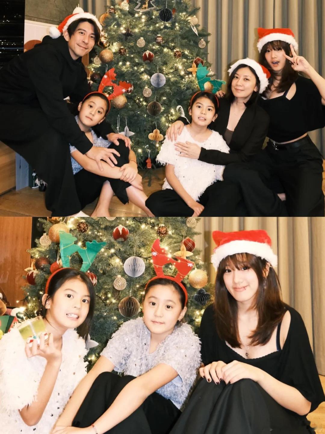 贾静雯修杰楷一家五口过圣诞2025圣诞,贾静雯修杰楷带着三个女儿拍的圣诞全家福也