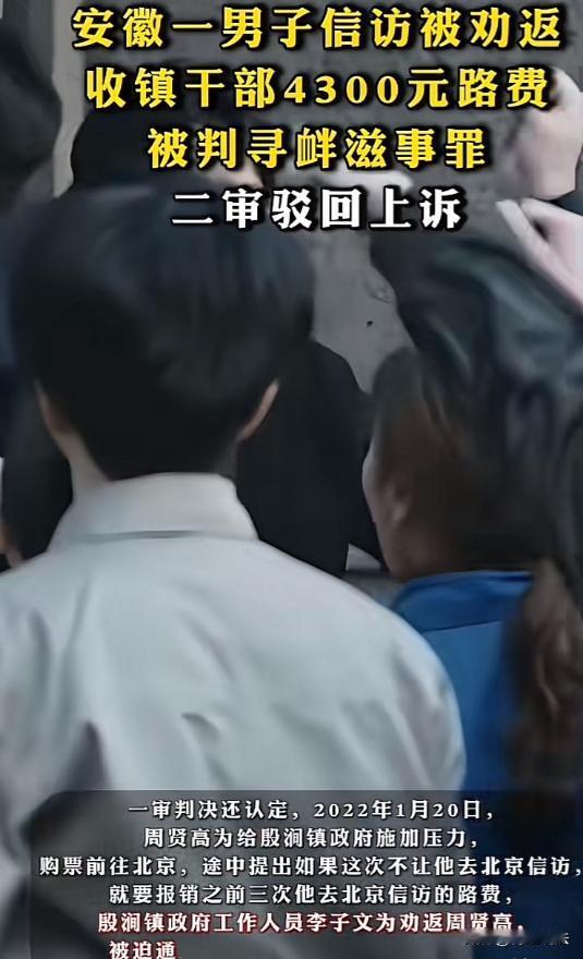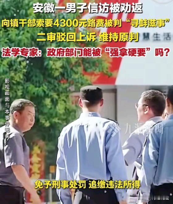 安徽凤阳,一男子因养殖场被关停拆除,对评估价格不满,买了去北京的车票打算信访,途中被镇干部拦住,男子称不去北京可以,但得报销之前3次去北京信访的4300元路费,镇干部当场转钱,两人回家后,镇干部却报了警,最终男子被判寻衅滋事罪。 (本信息来源于:九派新闻) 周某,是安徽凤阳人,2014年他注册了牧业公司,在水库水源保护区建起了养殖场,专门养种羊。 到了2016年,情况发生了变化。 因为养殖场处于水库水源保护区,按照相关规定,必须关停拆除。周某虽然心里不乐意,但也没办法,只能配合。 2017年,安排了两次评估,可周某对评估出来的价格非常不满意。他觉得自己投入了那么多,就这点补偿根本不够。 于是,他开始向各级信访部门反映情况,希望能得到更合理的补偿。 周某这一反映,就是好几年。 他多次前往北京信访,每次去都要花费不少路费、住宿费等。他觉得自己的诉求合理,政府应该重视并解决。 2022年1月12日,周某第三次去北京信访后,又买了去北京的车票,打算再去一次。 这一次,他在途中被镇人大的李某拦住了,李某劝周某别再去了,说这样解决不了问题。 周某心里憋着一股气,他对李某说,不去北京可以,但得报销他前三次去北京信访的4300元路费。他觉得这是自己为了争取合理补偿而产生的费用,政府应该承担。 李某当时可能也是为了尽快解决问题,避免周某再次去北京造成不好的影响,就同意了周某的要求,当场给周某转了4300元。 周某拿到钱后,就和李某一起回家了。可让周某没想到的是,回家后李某居然报了警。 很快,周某就被拘留了,之后被移送起诉。 一审法院审理后认定:周某构成寻衅滋事罪,但情节轻微,免予刑事处罚。 周某不服,觉得自己的行为没那么严重,于是上诉了。 可二审法院,还是维持了原判。 这结果让周某心里很不是滋味,他怎么也想不明白,自己正常的信访怎么就成了寻衅滋事罪了呢? 他觉得李某当时是自愿给的钱,自己并没有强迫他。 周某觉得自己信访是合法的,他是在维护自己的权益,而且李某给钱也不是被迫的,不能算强拿硬要。 而检方觉得周某不满拆迁赔偿,多次信访施压,还强拿硬要4300元,这明显构成寻衅滋事罪。 那到底谁的说法更有道理呢? 从法律角度看,这寻衅滋事罪是指肆意挑衅,随意殴打、骚扰他人或任意损毁、占用公私财物,或者在公共场所起哄闹事,严重破坏社会秩序的行为。 周某多次信访,虽然他觉得是为了争取合理补偿,但信访应该通过合法合理的途径进行。他反复去北京信访,给当地政府造成了一定的压力,这种行为在一定程度上扰乱了正常的信访秩序。 而关于那4300元路费,虽然周某觉得是合理支出,但李某当时给钱并不是出于自愿补偿的目的,而是为了阻止周某继续信访,避免事态扩大。 周某以不去北京为条件,要求李某报销路费,这种行为符合强拿硬要公私财物的特征。 根据《刑法》规定,强拿硬要公私财物,情节严重的,构成寻衅滋事罪。 周某的行为虽然情节轻微,但确实符合这一罪名的构成要件,所以法院认定他构成寻衅滋事罪是有法律依据的。 周某觉得李某给钱不是被迫的,这能成为他无罪的理由吗? 判断是否构成强拿硬要,不是看对方是否表面自愿,而是看行为人是否利用了一定的优势地位或者制造了某种压力,迫使对方交付财物。 周某以不去北京信访为条件,实际上就是给李某制造了压力,所以不能因为李某当时没强烈反抗就认为不是强拿硬要。 有些人遇到问题,第一反应就是去信访,觉得信访能解决问题。但信访也得依法依规,不能滥用信访权利。像周某这样反复去北京信访,不仅增加了自己的成本,也给政府工作带来了困扰。 而且,在维护自己权益的时候,不能采取不合理的手段。就像周某要求报销路费,这种行为虽然看似有理,但实际上已经超出了合理维权的范畴。 从周某的角度看,他为了争取合理的拆迁补偿,多次信访,这是他维护自身权益的一种方式。 但在信访过程中,他提出报销路费的要求,是否合理合法呢? 从法律层面讲,信访是公民的权利,但信访应当依法依规进行,不能通过不正当的手段来达到自己的目的。 而镇干部李某,在处理周某信访问题时,为了尽快解决问题,选择当场转账报销路费,这种做法虽然在一定程度上缓解了当时的矛盾,但也为后续的纠纷埋下了隐患。 在面对类似情况时,镇干部是否应该更加谨慎地处理,通过合法合理的途径来解决问题呢? 最终,一审法院认定周某构成寻衅滋事罪,免予刑事处罚,二审维持原判。 在维护自己权益的时候,一定要依法依规,不能采取过激或者不合理的手段。 信访是公民的权利,但也要合理使用,不能把信访当成解决问题的唯一途径。 遇到问题,还是要通过合法的渠道,可以协商、诉讼等方式来解决。只有这样,才能既维护自己的权益,又不违反法律规定。 在遇到类似的事时,要冷静处理,用合法的方式解决问题。
