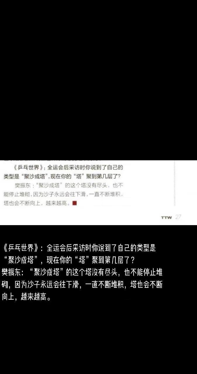 世界冠军最怕的不是对手,而是没有沙子的明天。 你看到他在亚运会场砸穿台角的暴冲,看不见他每天多练的那500次接发球。 拍胶在反复摩擦中磨损出凹痕,地胶被汗水浸出深色的人形——这些才是他口中会“滑落”的沙。 领奖台聚光灯太亮,亮到让你忘记塔基永远在阴影里。 赛后混采区挤满记者,他擦着汗说“还得堆沙”。 这话不是谦虚。 乒乓球的残酷在于:昨天守住的冠军,今天可能连资格赛都过不去。 球速每分钟快0.1转,胶水配方微调0.03克,对手多研究你一个习惯性侧身——沙堆随时可能崩塌。 所以他在所有人庆功时,独自回训练馆加练发球。 摄像头关闭后的第37分钟,他还在对墙打定点。 体育记者们早就写完了“王者卫冕”的稿子,没人记录他弯腰从墙角抠出一颗变形的训练球。 真正的高手,恐惧的不是输赢。 是怕自己某天醒来,找不到那颗该垒上去的沙。 聚沙成塔最狠的不是“成塔”,是你得接受99%的沙子注定滑落。 然后依然蹲下去,捡起第100粒。 领奖台挂金牌的脖颈,和清晨五点扛杠铃的脖颈,用的是同一组肌肉。 塔尖之下,皆是无人看见的日夜。 沙粒之上,站着所有不肯低头的时间。