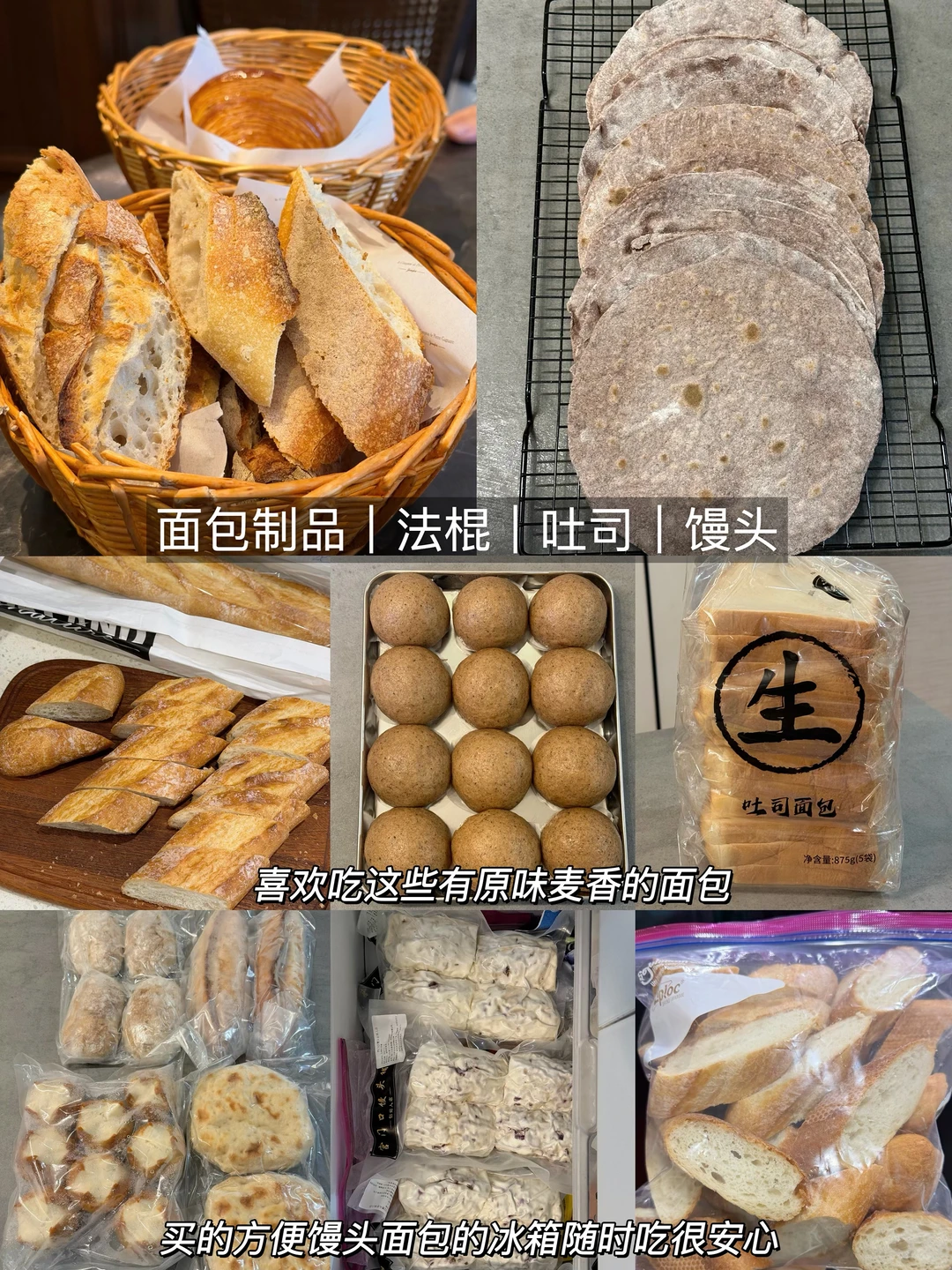 法棍买了切片冷冻储存、杂粮馒头或者宫门口这些都可以随时蒸很nice,吐司最近用这款比较多三片一包装买回来直接冷冻
