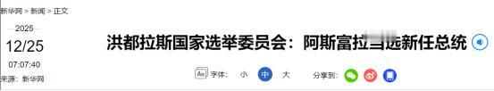 特朗普支持的阿斯夫拉确定当选洪都拉斯总统。选前他有两大承诺:一是无条件接受洪都拉斯在美移民返乡,二是与台湾当局“复交”。 当地时间 24 日,随着选举委员会敲定 99.93% 的计票结果,国民党候选人阿斯夫拉以 148 万票、40.26% 得票率的微弱优势胜出,仅比对手纳斯拉亚多了 2 万多张票,这个差距还不到总票数的 1%。可谁都清楚,这 2 万票的背后,站着远在华盛顿的操盘手特朗普。 这场选举从一开始就没按 “剧本” 走。11 月 30 日投票当天,计票网站突然 “故障瘫痪”,结果一拖再拖,领先位置在阿斯夫拉和纳斯拉亚之间反复易主,一度被判定为 “技术性平局”。 就在洪都拉斯人摸不着头脑时,特朗普的 “组合拳” 已经砸了过来:先是高调威胁 “选不出阿斯夫拉就断援助”,接着突然赦免了被判 45 年监禁的洪都拉斯前总统埃尔南德斯。 这位被美国法院坐实 “走私 400 吨可卡因” 的毒贩总统,恰恰是阿斯夫拉所在政党的前领袖。 明眼人都看得明白,这是用赦免换选票,用威胁保胜局。现任总统卡斯特罗怒批这是 “赤裸裸的勒索操控”,可终究没能挡住美国的干预之手。 阿斯夫拉能上台,全靠两张 “空头支票” 撑场面。最让美国上心的,是他那句 “无条件接受在美移民返乡”。美国国务卿鲁比奥一听到结果就赶紧表态 “欢迎”,直言这能 “遏止非法移民”。 可他压根没提,洪都拉斯早就是 “移民输出大国”,战乱、黑帮和贫困把超过 150 万人逼去了美国,其中大半是非法移民,而这些人寄回的汇款撑起了洪都拉斯经济的半壁江山,不仅养活千万家庭,还能稳定汇率、填补贸易逆差。 要是真把移民全接回来,没工作没收入的年轻人只会更绝望,要么加入黑帮,要么接着往美国跑。阿斯夫拉这承诺,说白了就是给美国递投名状,哪管本国人生死。 更离谱的是他对台湾喊出的 “甜言蜜语”。这位新总统不止一次叫嚷 “和台湾建交比现在好百倍”,今年 7 月还对着彭博社放话,说胜选就恢复 “邦交”。 这话骗骗外人还行,洪都拉斯人心里门儿清:2023 年和中国建交前,台当局每年只给 5000 万美元援助,还不肯免债务;建交后中国立马送来经贸合作大单,光是对华出口就涨了 20% 以上。 台当局自己都承认,洪都拉斯当年是因为 “给的钱不够” 才断交的。现在阿斯夫拉又提这茬,无非是想讨好美国。 毕竟特朗普早就放话,要通过扶持亲美派 “遏制其他大国影响力”。可他忘了,一个中国原则是国际共识,就算真敢玩火,丢的也是洪都拉斯的经济利益。 特朗普对这小国的 “上心程度”,简直反常。一个面积不如福建省、人口刚过千万的穷国,值得美国前总统亲自下场拉票?答案藏在 “后院战略” 里。 洪都拉斯是中美洲 “北三角” 关键节点,既是美国毒品走私的主要通道,又是非法移民的源头之一。特朗普一边喊着 “合作打击毒品”,一边赦免毒贩前总统,说白了就是 “顺我者昌”,只要阿斯夫拉听话,毒品问题能当筹码。 要是左翼上台延续对华友好政策,美国就立马翻脸。这套路和他在委内瑞拉搞军事威胁、在阿根廷扶持右翼米莱如出一辙,都是为了把拉美变回 “美国说了算” 的后院。 但阿斯夫拉的日子恐怕不好过。先不说纳斯拉亚还在质疑选举舞弊,单是那两个承诺就难落地:接回移民没钱安置,和台湾 “复交” 没好处拿。 更关键的是,洪都拉斯人早就看透了美国的把戏 —— 当年埃尔南德斯当傀儡,毒品和暴力照样泛滥;现在换个阿斯夫拉,难道就能过上好日子?有分析说得实在:“不管左右上台,都离不开中国的市场和投资”。 这场选举就像一面镜子,照出了美式霸权的虚伪:一边讲 “民主”,一边干预他国选举;一边喊 “禁毒”,一边赦免毒贩总统。而阿斯夫拉那句 “比现在好百倍” 的承诺,更像个笑话。 要是真为老百姓好,不如先想想怎么把美国的援助换成工作岗位,怎么留住不用背井离乡的移民,而不是跟着特朗普当棋子。毕竟选票能骗一时,日子过得好不好,洪都拉斯人心里自有杆秤。