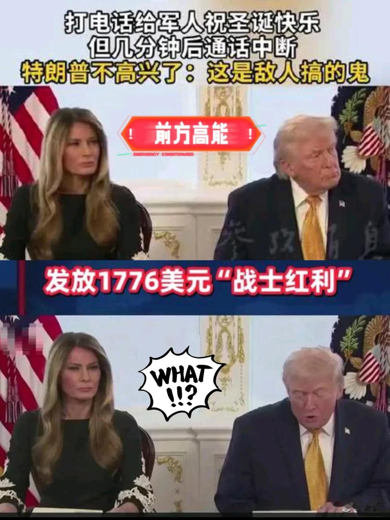 这事儿也就懂王能干得出来,简直是把“甩锅”艺术发挥到了极致。 大圣诞节的,本来是给前线大兵们送温暖,结果电话打一半断了。这要在咱们这儿,也就是个信号故障的事,人家倒好,张嘴就来:“这是敌人搞的鬼”。 我就纳闷了,白宫那是什么地方?全球安保最严的堡垒,连个电话线都看不住?要是敌人真有这通天手段,能随时掐断总统通讯,那美军还打什么仗,趁早回家洗洗睡吧。 看来在他那儿,只要是不顺心的事,那绝对不能是技术故障,必须得是“阴谋论”。这一本正经胡说八道的样子,也就他那些铁粉能信了。 总统圣诞致电军人却突遇尴尬,暖心时刻秒变社交现场。大佬也难逃翻车,真实反差戳中笑点,果然顶级人物也有凡人囧态!
