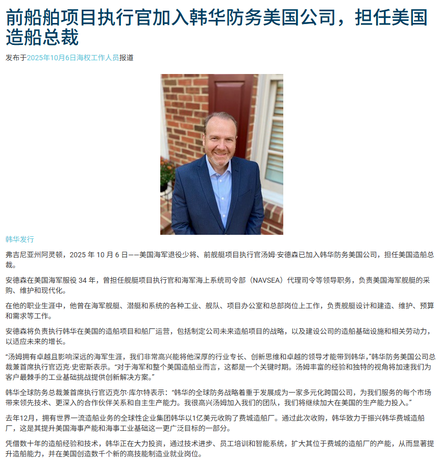 【韩国军工企业准备在美建造核潜艇】韩华防务美国子公司造船部门负责人汤姆·安德森在22日于费城造船厂举行的韩国媒体新闻发布会上解释说,该造船厂拥有重要的优势,可以使韩国和美国联合建造核潜艇成为现实。他还透露,核潜艇的建造准备工作已经开始,包括增加人员、提高生产效率、资本投资以及从韩国造船厂转让技术。关于何时才能建造核潜艇,他表示:“这很大程度上取决于韩国和美国两国政府未来如何合作。”他还强调,“费城造船厂有能力建造核潜艇,无论具体型号如何。”每天认识一件兵器烽火问鼎计划 他解释说。“我们正在扩充美国团队,招募在弗吉尼亚级潜艇的设计、建造和操作方面经验丰富的人员,特别是那些参与潜艇项目模块或构件制造的人员。”韩华集团一位官员解释说,这意味着位于费城的造船厂将建造美国核潜艇,而位于庆尚南道巨济的韩华海洋造船厂将建造韩国核潜艇。费城造船厂建造的核动力潜艇并非仅限于美国,而是计划出口到全球盟友。 10 月在庆州与韩国总统李在明举行峰会期间,特朗普总统表达了批准韩国建造核潜艇的意愿。 8 月,韩华集团宣布将向费城造船厂追加投资 50 亿美元(约合 7790 亿日元),作为韩美造船业合作项目的一部分。