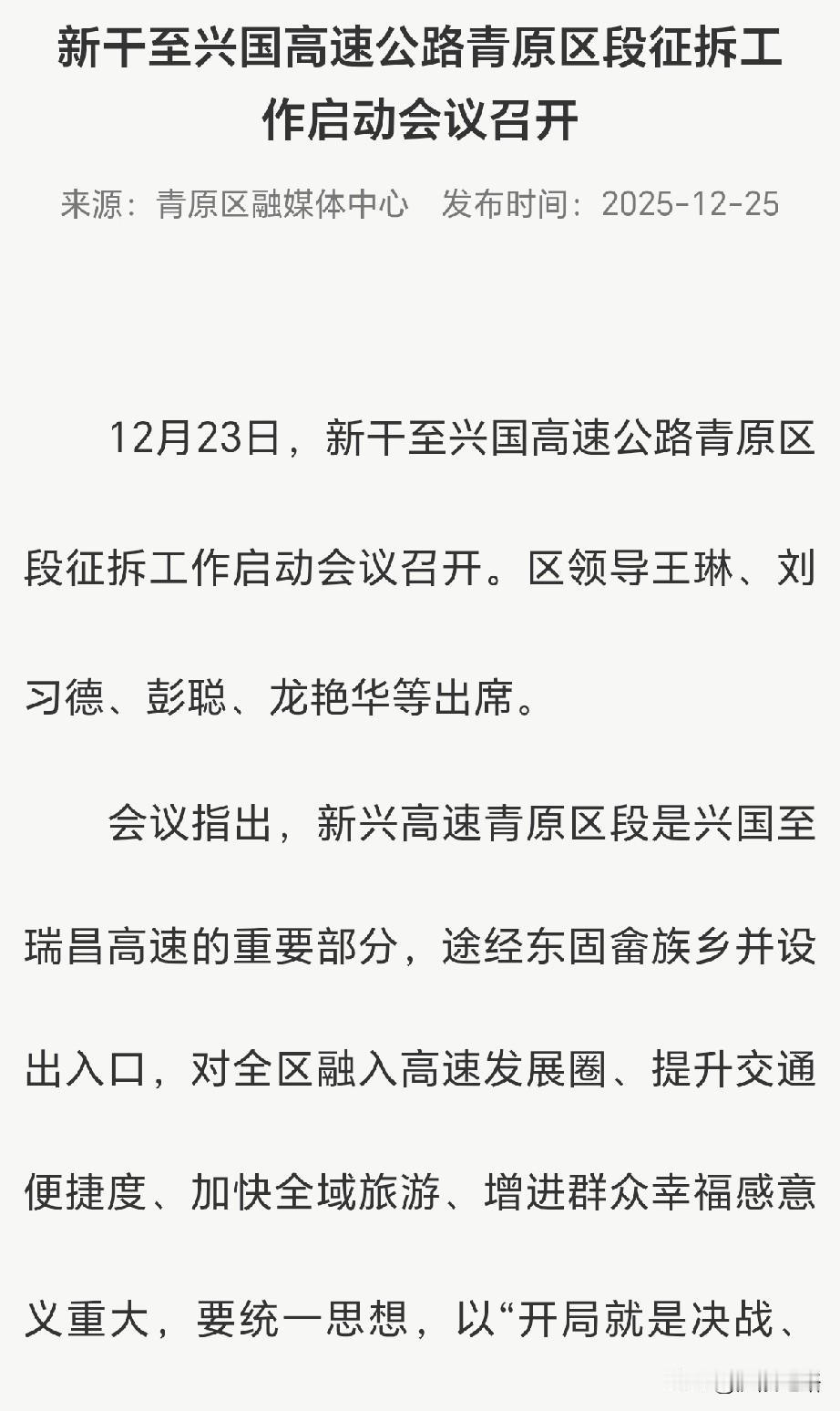 好消息!江西新兴高速青原区段征拆工作启动会议盛大召开,东固互通出入口这一关键信息
