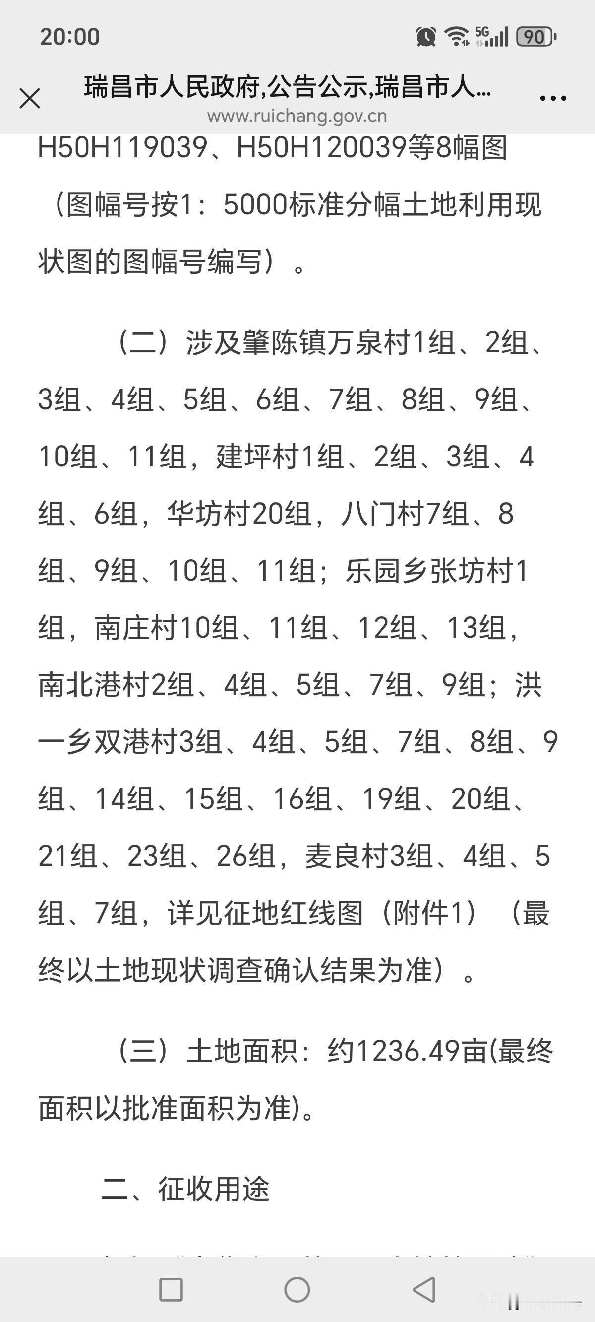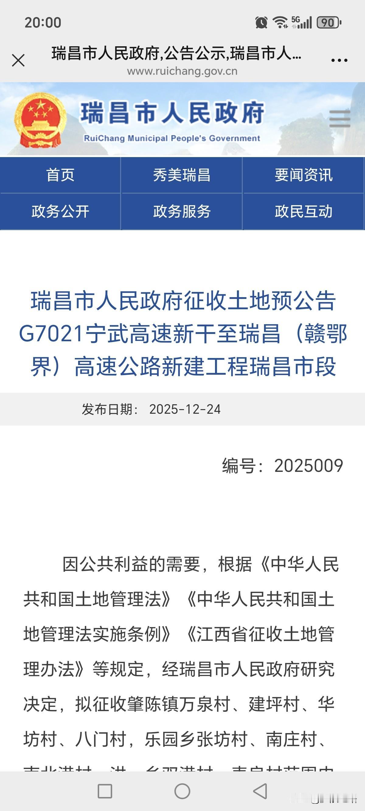 好消息,江西九江瑞昌市新增一个高速出入口,详细地址公布。 近日,新瑞高速九江市首个县市征收土地报告发布,拟征土地收约1236.49亩。瑞昌肇陈互通来了,位于肇陈镇万泉村附近一带。 瑞昌市人民政府征收土地预公告 G7021宁武高速新干至瑞昌(赣鄂界)高速公路新建工程瑞昌市段,拟征收肇陈镇万泉村、建坪村、华坊村、八门村,乐园乡张坊村、南庄村、南北港村,洪一乡双港村、麦良村范围内的集体土地。具体事项预公告如下: (二)涉及肇陈镇万泉村1组、2组、3组、4组、5组、6组、7组、8组、9组、10组、11组,建坪村1组、2组、3组、4组、6组,华坊村20组,八门村7组、8组、9组、10组、11组;乐园乡张坊村1组,南庄村10组、11组、12组、13组,南北港村2组、4组、5组、7组、9组;洪一乡双港村3组、4组、5组、7组、8组、9组、14组、15组、16组、19组、20组、21组、23组、26组,麦良村3组、4组、5组、7组,详见征地红线图(附件1)(最终以土地现状调查确认结果为准)。 (三)土地面积:约1236.49亩(最终面积以批准面积为准)。