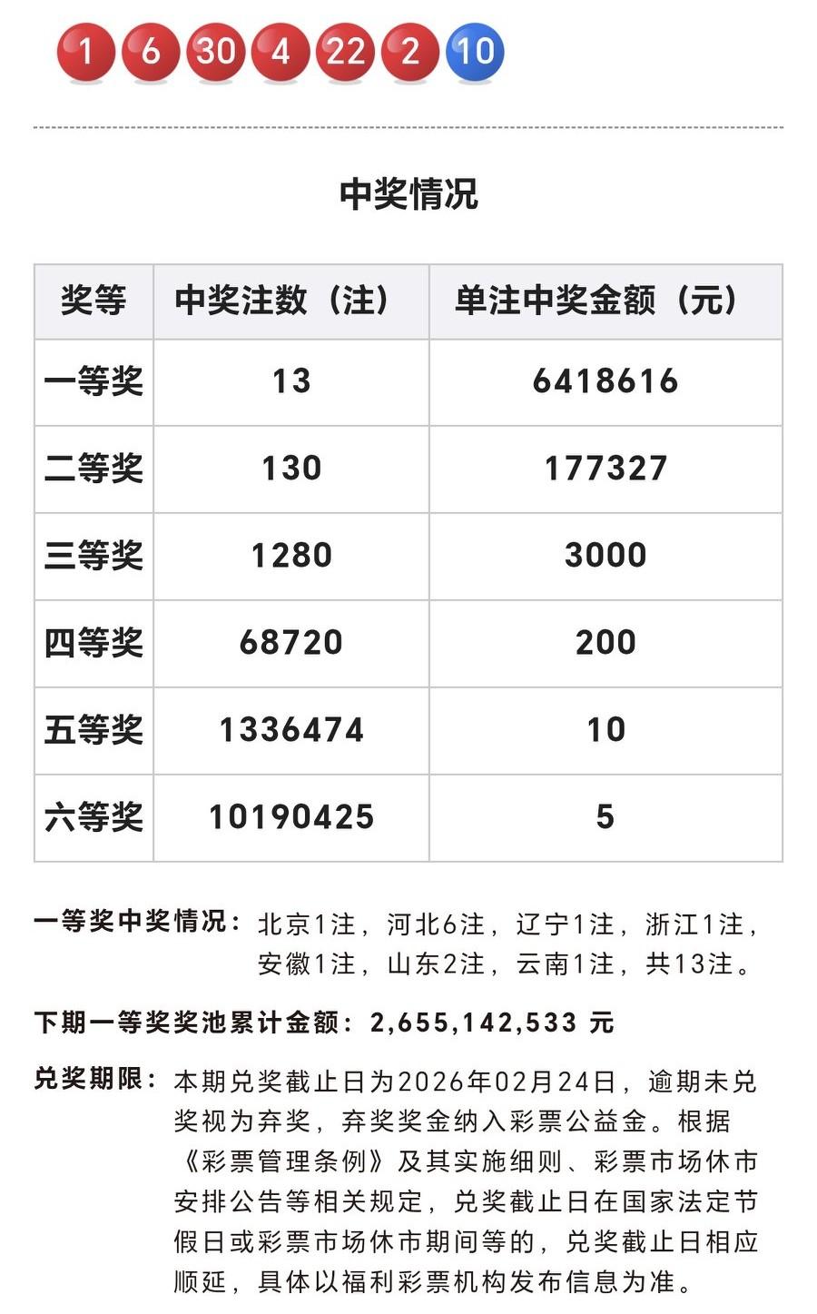 今晚双色球进行了第25149期的开奖。全国共中出13注一等奖,河北独中6注,山东2注,其余各地均1注。又诞生两位千万富翁,彩民朋友你中奖了吗?