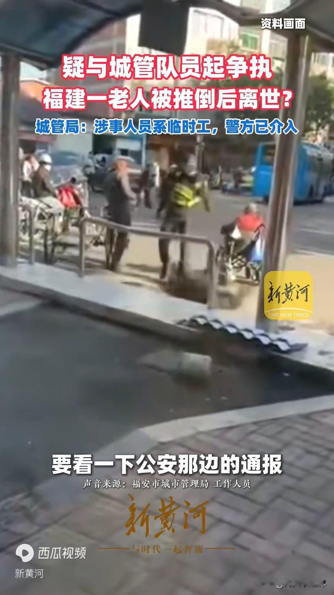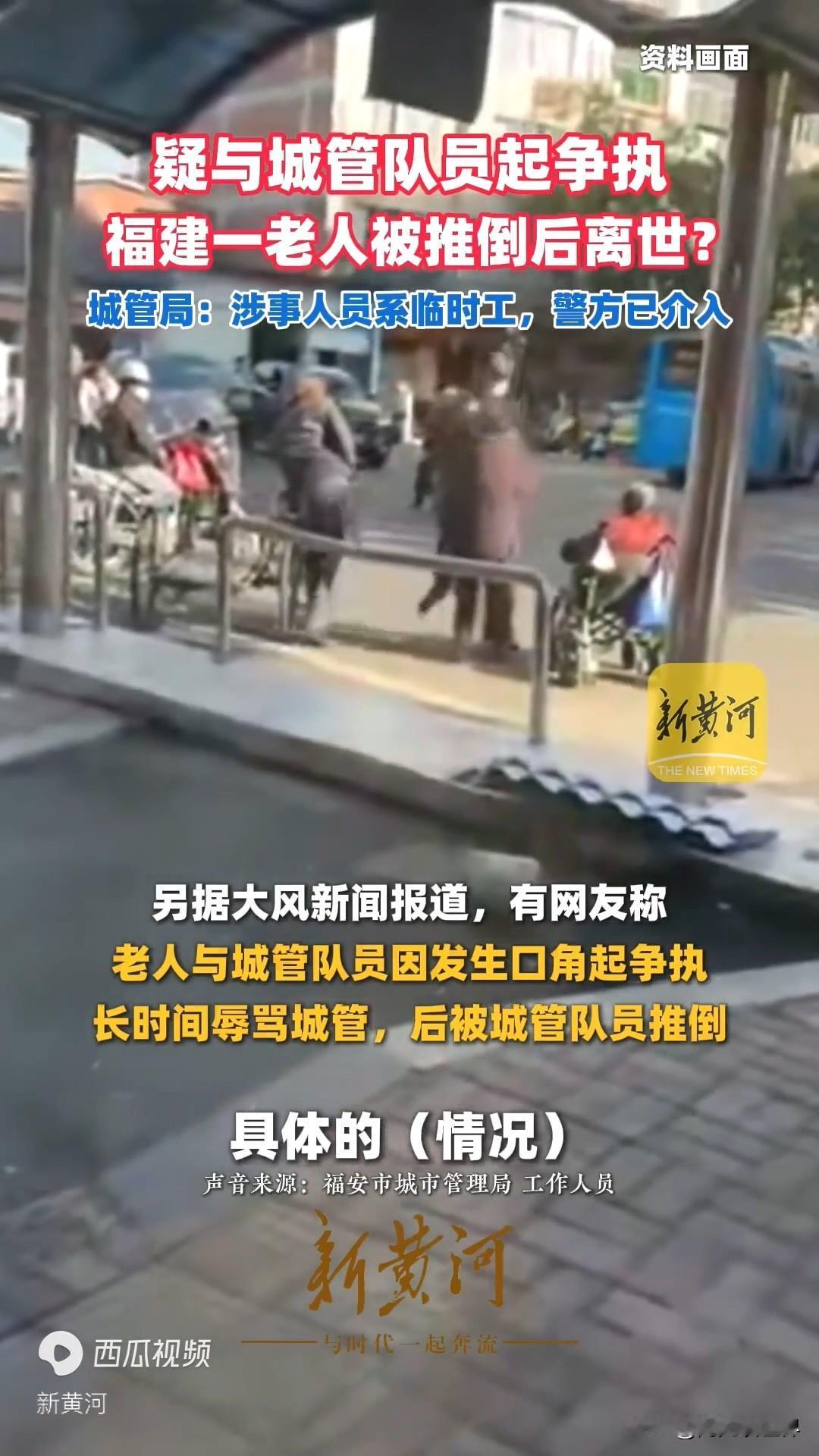 福建一老人被推倒后离世,疑与城管队员发生争执。涉事人员系临时工,已被刑拘。 事发在12月21日,媒体视频显示:福安一路口,一老人背着手走下公交站台,一名身穿城管制服人员奔跑靠近,并顺势将老人推倒在地。老人重重摔倒在地。 有知情者称,老人与城管队员先起争执(具体原因不明),一直辱骂城管队员。之后,就发生了推人事件。 城管局工作人员回应称:涉事队员是临时工,公安已经立案,老人送医后抢救无效离世。具体情况要等待公安的通报。 这又是一起执法纠纷发生的不幸事件。视频中,老人重重摔到地上,让人揪心。我们期待出现奇迹,老人能够抢救回来了。 如果老人不幸去世,那么这名城管的责任就大了。 他是否要承担刑事责任,接受多重的刑罚,具体还要看司法鉴定报告,理清推倒行为和老人死亡之间的因果关系。 如果能确认推倒是造成老人死亡的直接原因(比如颅脑重伤),或者是主要诱因(诱发心脏病、高血压等基础疾病),这名队员就必须要承担刑事责任。 办案机关还会查明该队员是否有故意伤害的动机。 如果没有,那就是过失致人死亡,可能判3年至7年有期徒刑。如果有伤害的故意,那么可能构成故意伤害(致人死亡)罪,最高可判无期徒刑。 无论这名队员是否涉嫌犯罪,他都将被开除,还要承担民事赔偿责任。 根据城市管理有关规定,城管协管员只能从事辅助性的执法工作,并不能够独立执法。其行为产生的法律后果全部由所属的城管部门承担。 也就是说,由所属的单位先进行赔偿,再按照涉事人员的过错大小,按比例追回赔偿款。 至于这名队员的临时工身份,并不能减轻他的责任。不少网友质疑:为什么一线城管执法人员中有这么多临时工呢? 说到底,城市管理既琐碎,又繁重。正式编制的执法人员数量有限,根本忙不过来。 而临时工薪资社保低,招收解雇便捷,能够快速填补人手缺口,是基层城管低成本运转的解决办法。 更何况临时工还有缓冲风险的作用,有的单位可能会用临时工来当“挡箭牌”,出事就用“临时工违规,已开除”,快速平息争议。 目前事件还在调查中,最终会如何处理,要等待官方通报。对此事件,你有什么看法?欢迎在评论区留言!