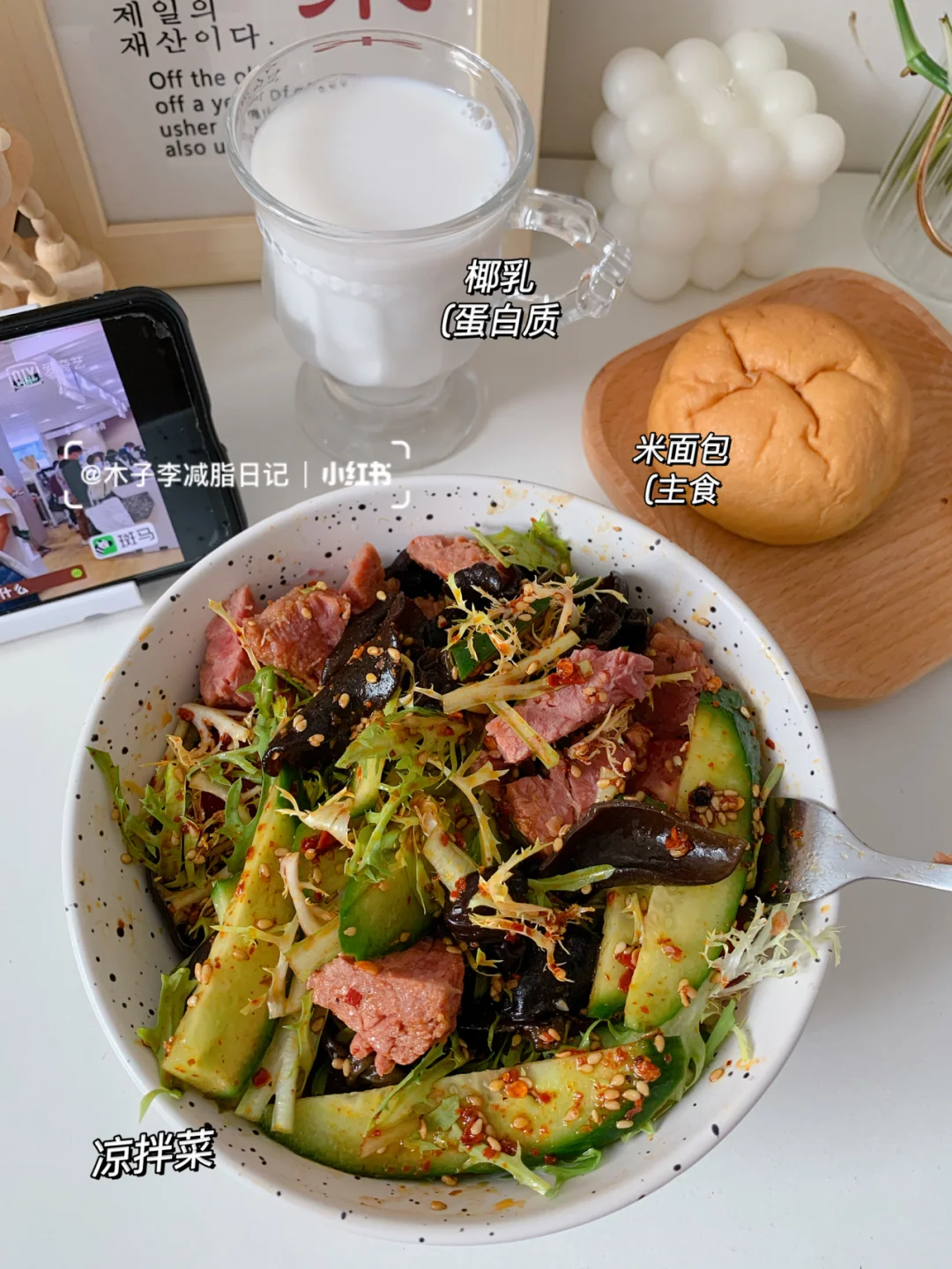 🥙午餐:凉拌菜➕米面包➕椰乳