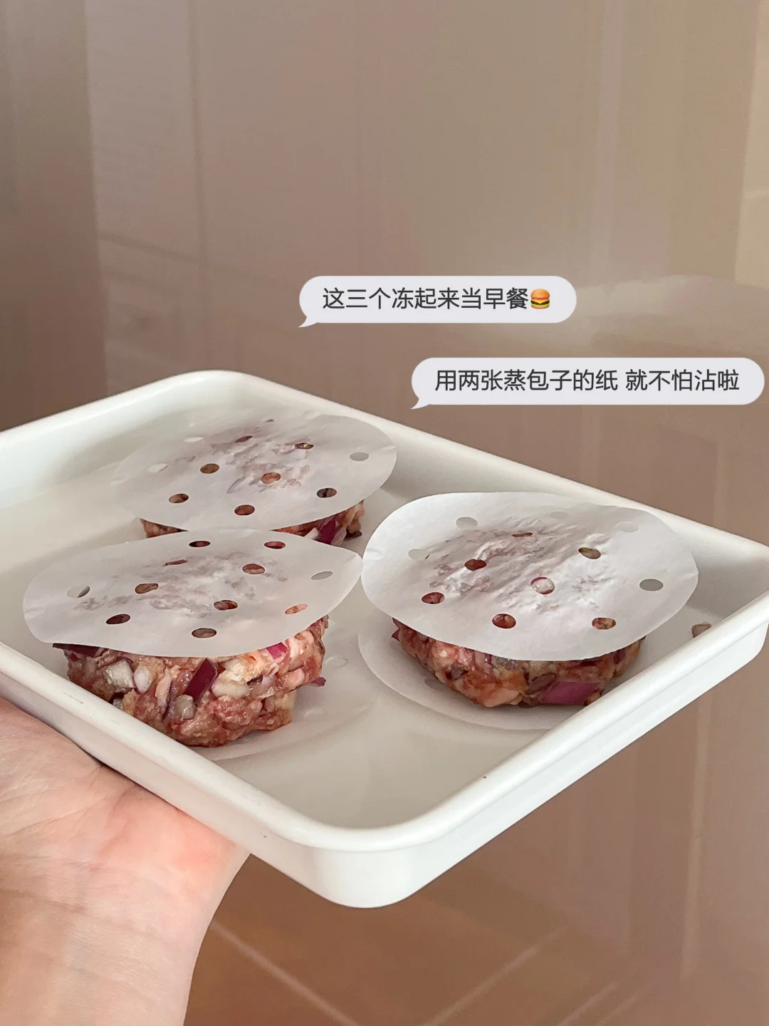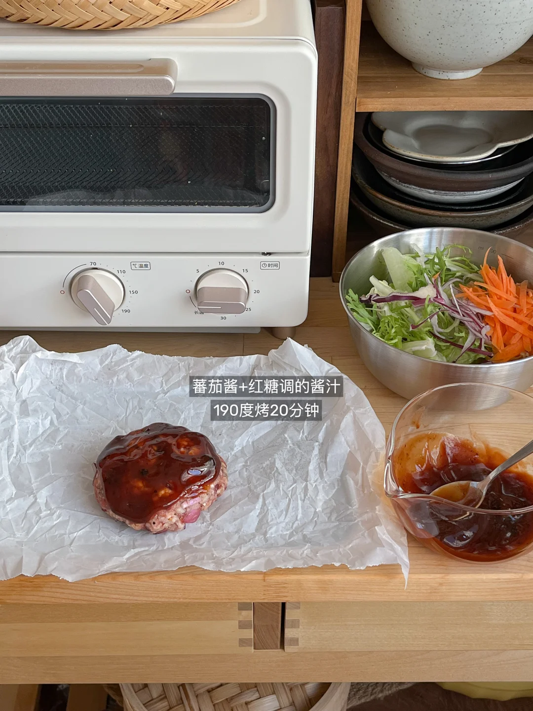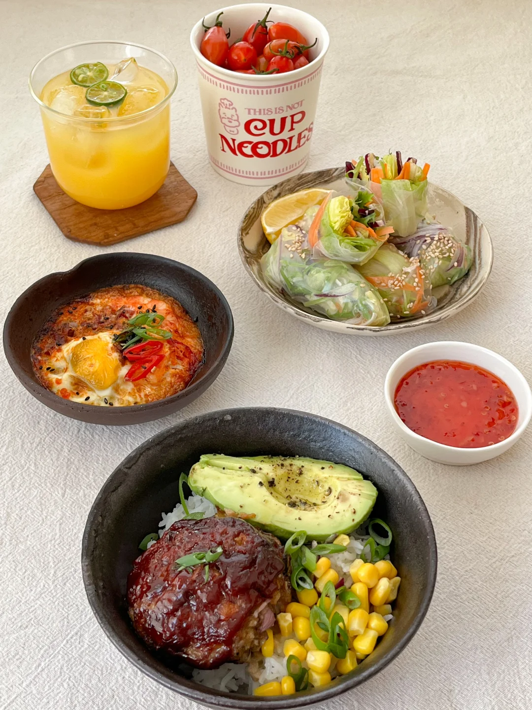 今天的饭: 玉米牛肉饼盖饭🍔 金枪鱼蔬菜春卷🫔 香辣虾仁烤蛋🍳 冰橙汁🧃 🍔好吃的牛肉饼来喽 牛肉碎(我买的上脑自己搅碎 鸡蛋、面包糠、洋葱 大蒜粉、盐、粗颗粒黑胡椒、烤牛排腌料 把所有食材用手抓拌均匀 分成80-90克 在手上摔打几下 吃不完就用蒸包子的油纸 上下各放一张 冷冻 肉饼互相也不沾 用番茄酱+红糖做个酱汁抹在肉饼上 烤箱190-200度烤15-20分钟 🥗金枪鱼蔬菜春卷 在超市买的混合沙拉+金枪鱼罐头 用沙拉酱和黑胡椒做成调味金枪鱼酱 泡软的春卷皮把它们统统包起来