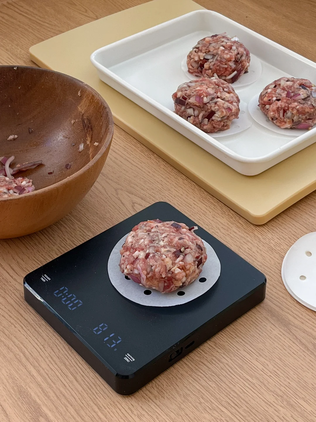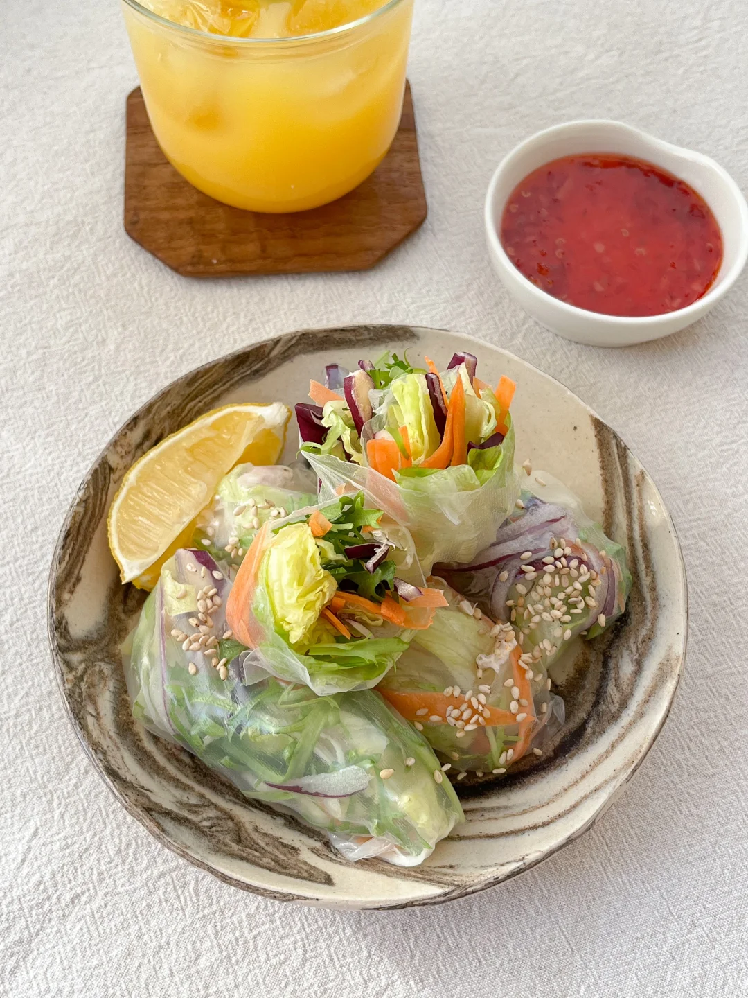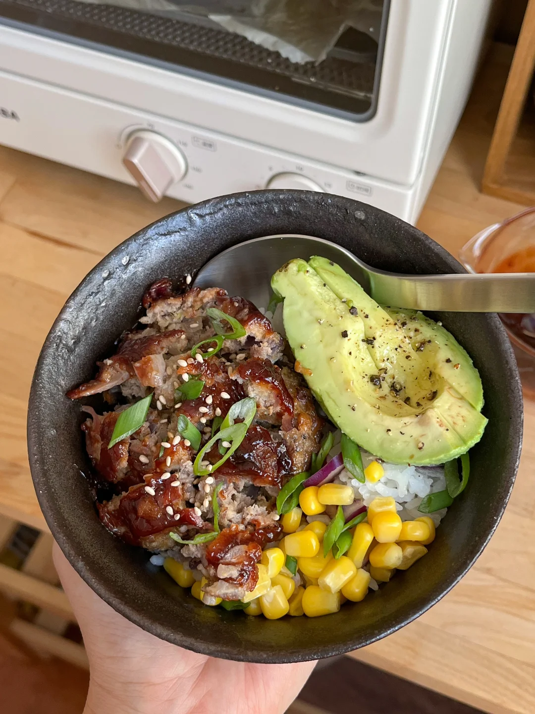 今天的饭: 玉米牛肉饼盖饭🍔 金枪鱼蔬菜春卷🫔 香辣虾仁烤蛋🍳 冰橙汁🧃 🍔好吃的牛肉饼来喽 牛肉碎(我买的上脑自己搅碎 鸡蛋、面包糠、洋葱 大蒜粉、盐、粗颗粒黑胡椒、烤牛排腌料 把所有食材用手抓拌均匀 分成80-90克 在手上摔打几下 吃不完就用蒸包子的油纸 上下各放一张 冷冻 肉饼互相也不沾 用番茄酱+红糖做个酱汁抹在肉饼上 烤箱190-200度烤15-20分钟 🥗金枪鱼蔬菜春卷 在超市买的混合沙拉+金枪鱼罐头 用沙拉酱和黑胡椒做成调味金枪鱼酱 泡软的春卷皮把它们统统包起来
