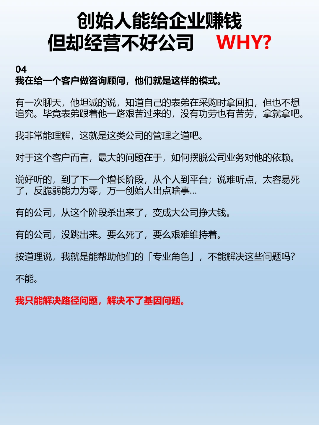 创始人能赚钱但却经营不好公司WHY?
